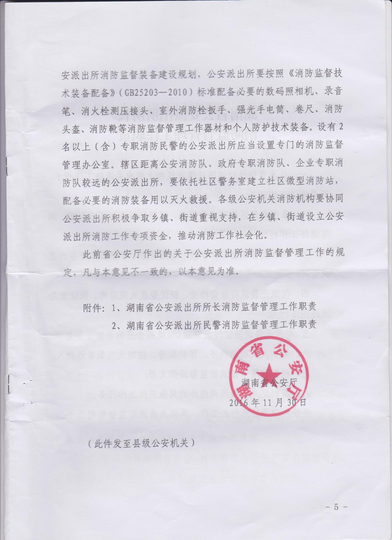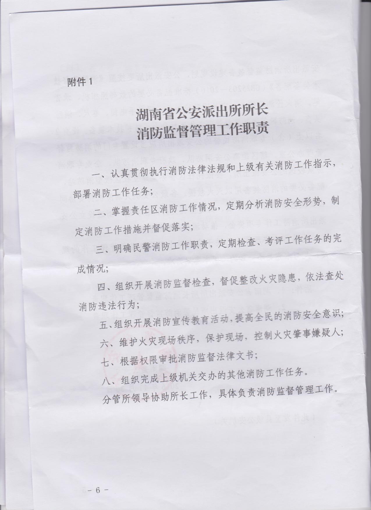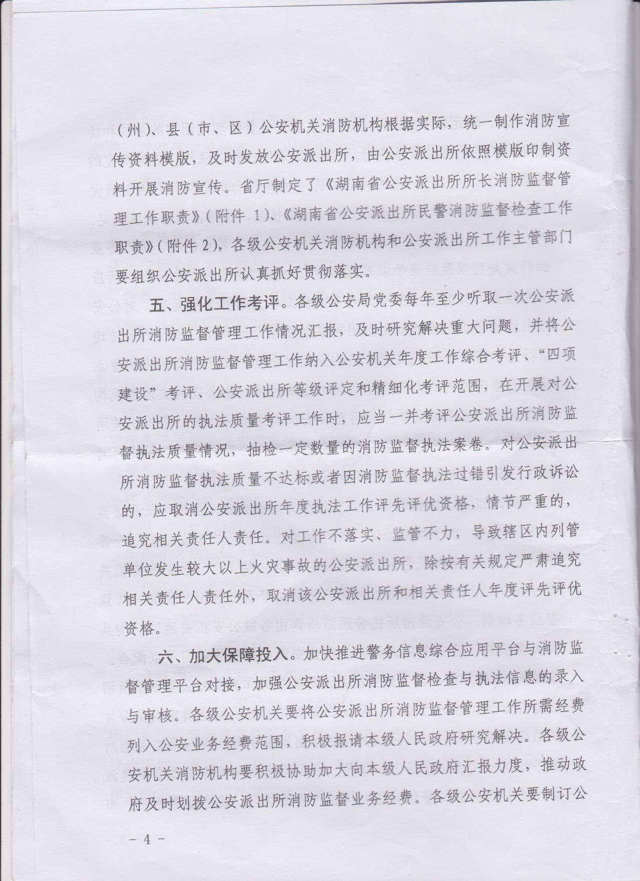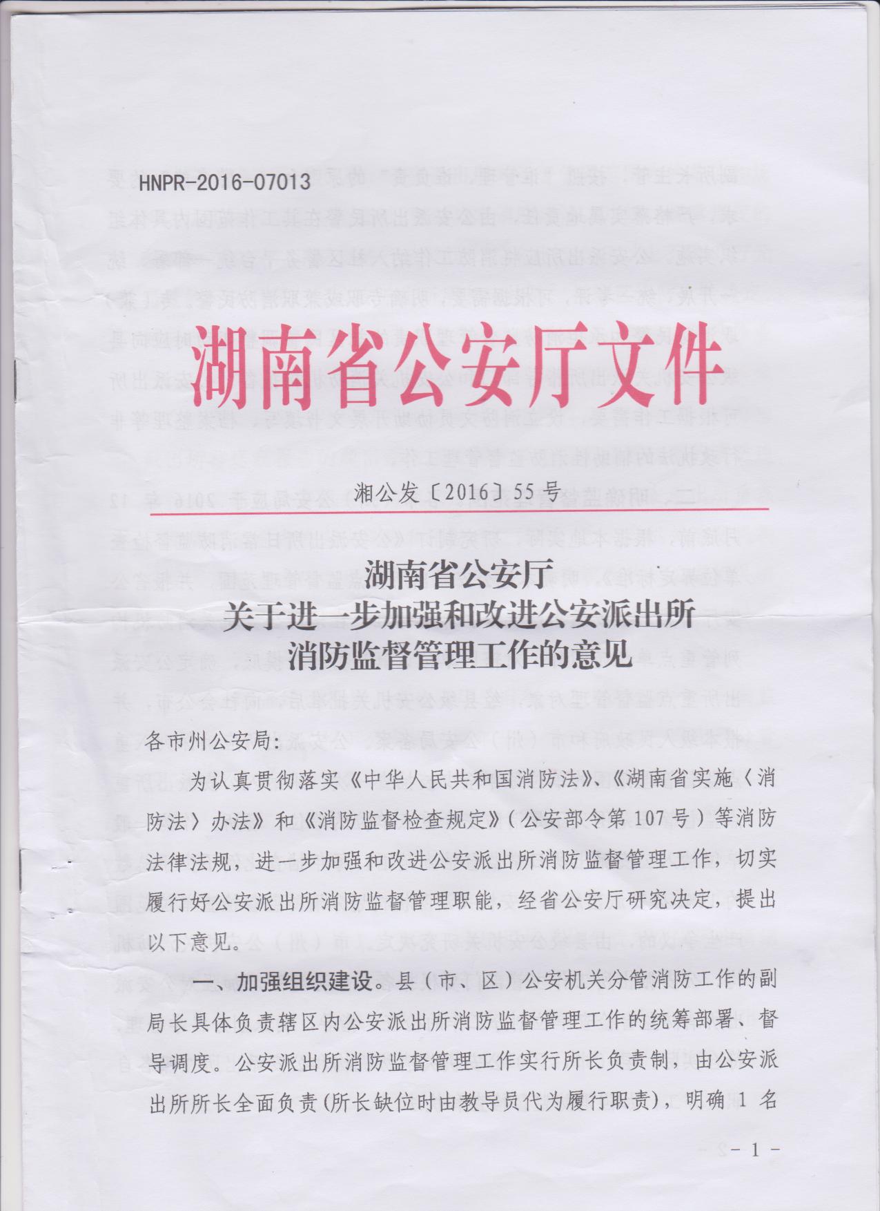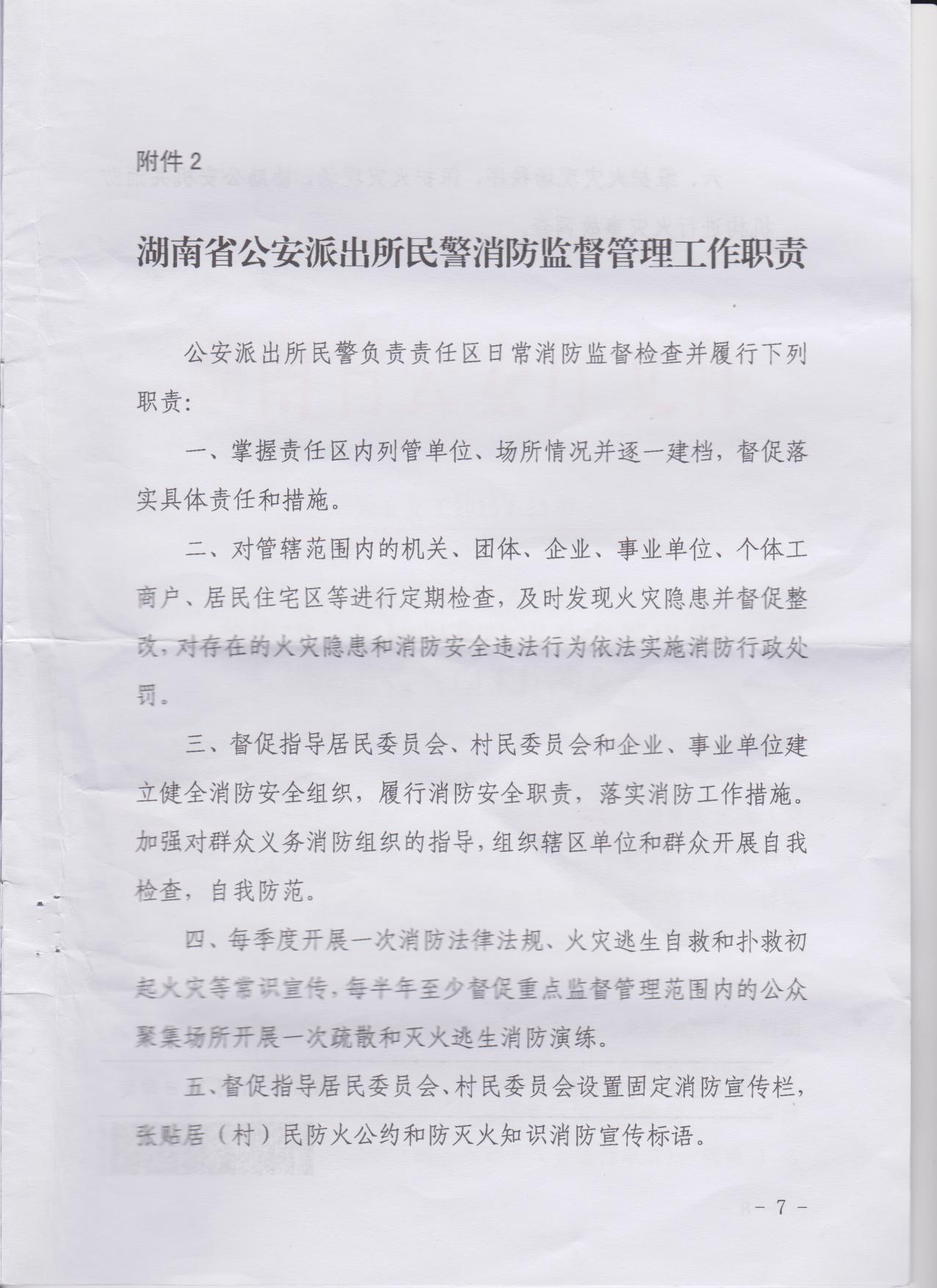 湖南省公安廳文件關(guān)于進一步加強和改進公安派出所消防監(jiān)督管理工作的意見