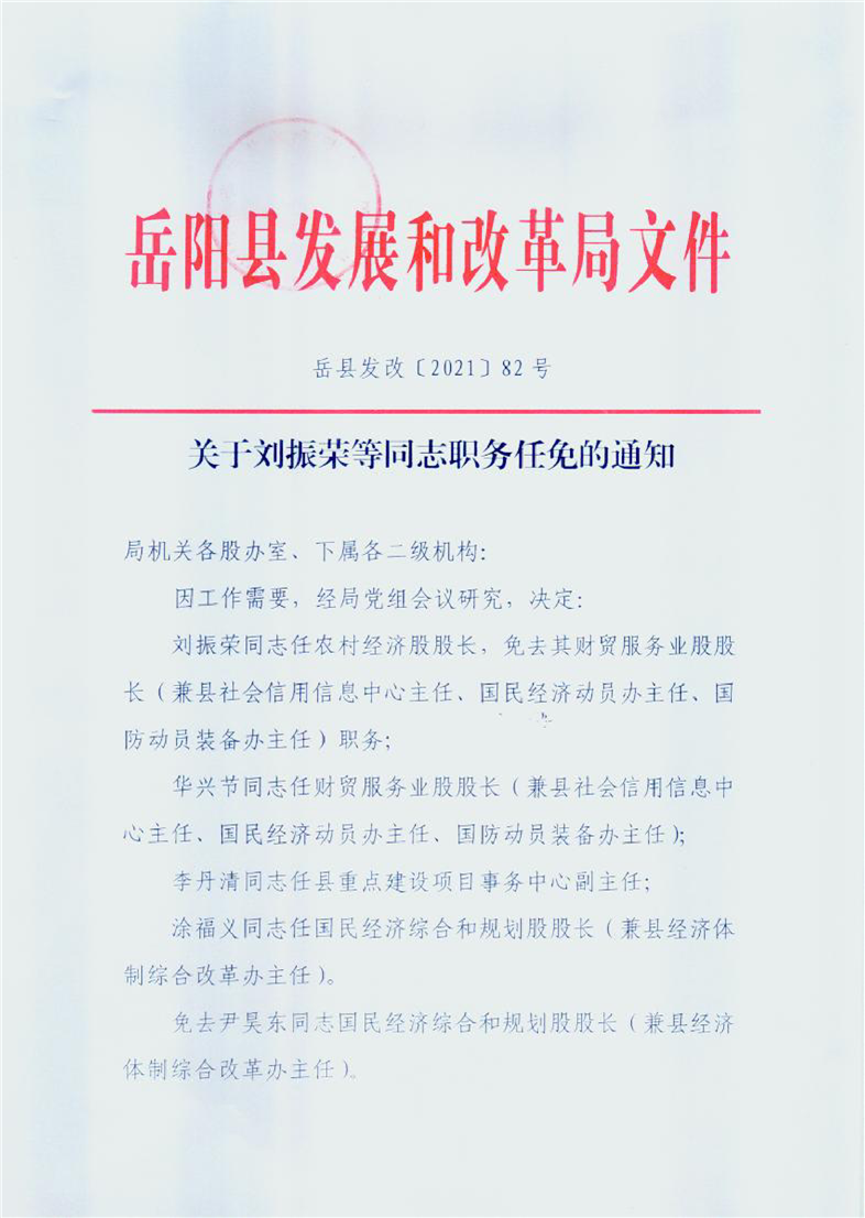 關(guān)于劉振榮等同志職務(wù)任免的通知