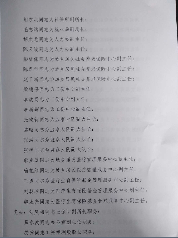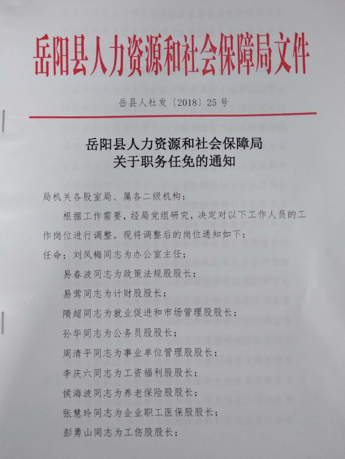 岳陽(yáng)縣人力資源和社會(huì)保障局關(guān)于職務(wù)任免的通知