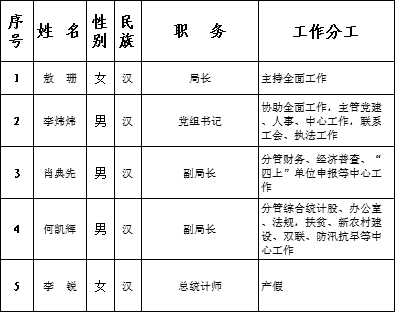 2020年岳陽縣統(tǒng)計(jì)局班子分工一覽表