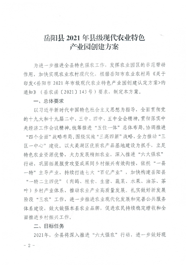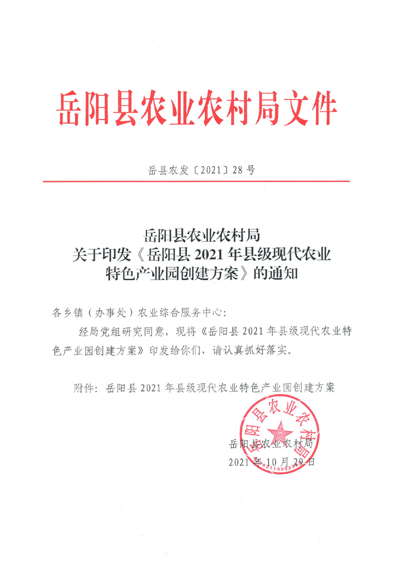 岳陽縣2021年縣級(jí)現(xiàn)代農(nóng)業(yè)特色產(chǎn)業(yè)園創(chuàng)建方案