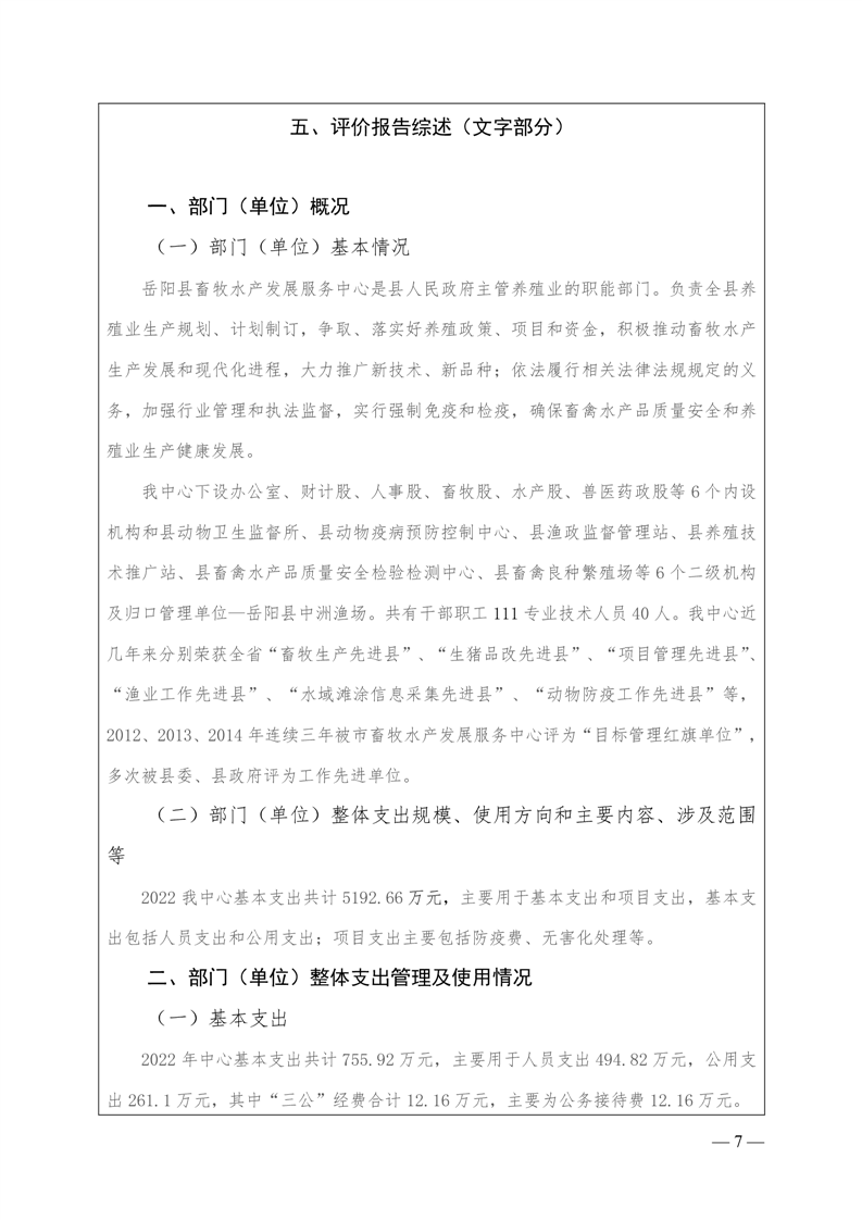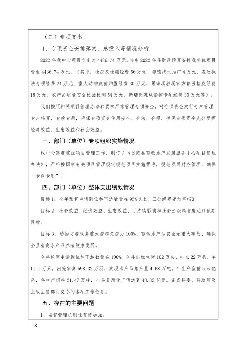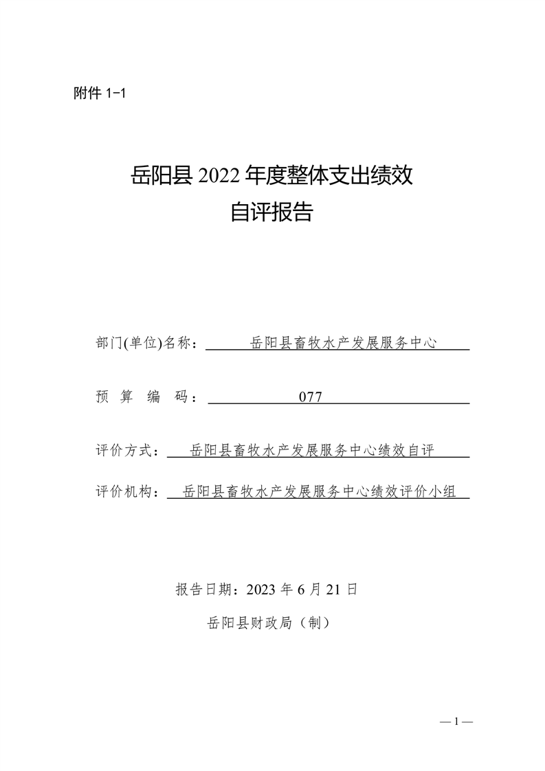 岳陽縣2022年度整體支出績效自評(píng)報(bào)告(縣畜牧水產(chǎn)發(fā)展服務(wù)中心)