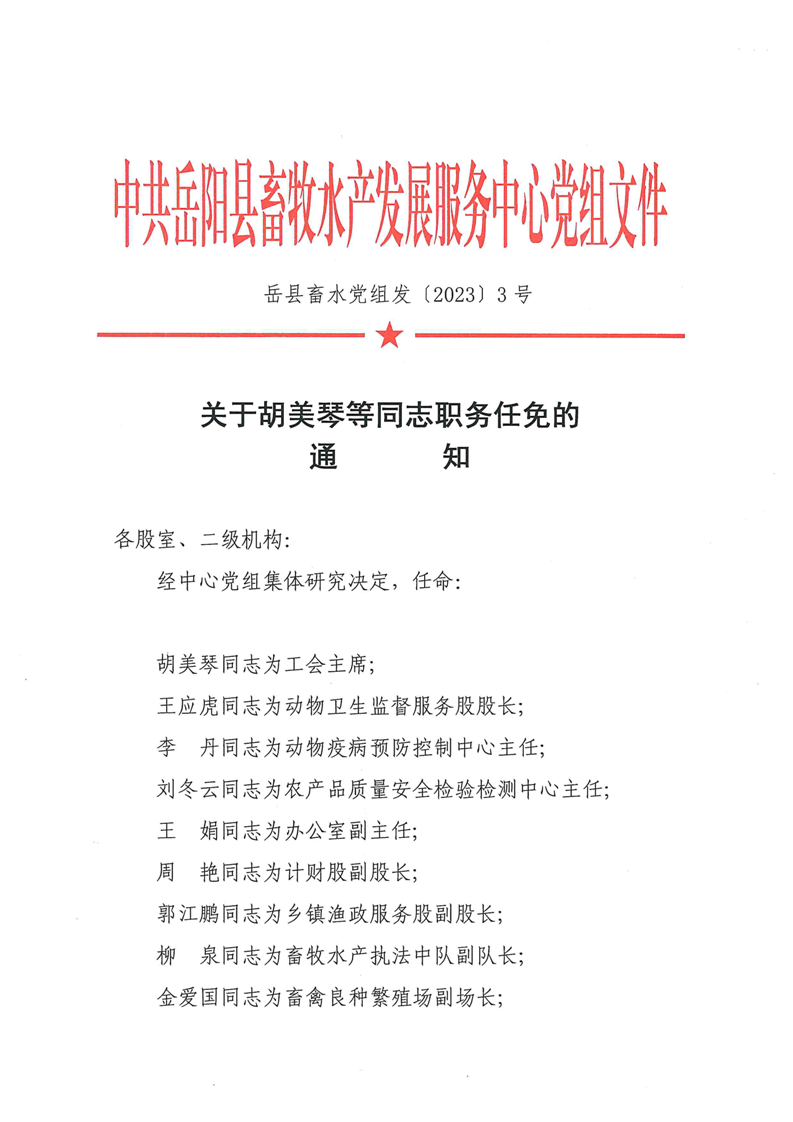 關(guān)于胡美琴等同志職務(wù)任免的通知