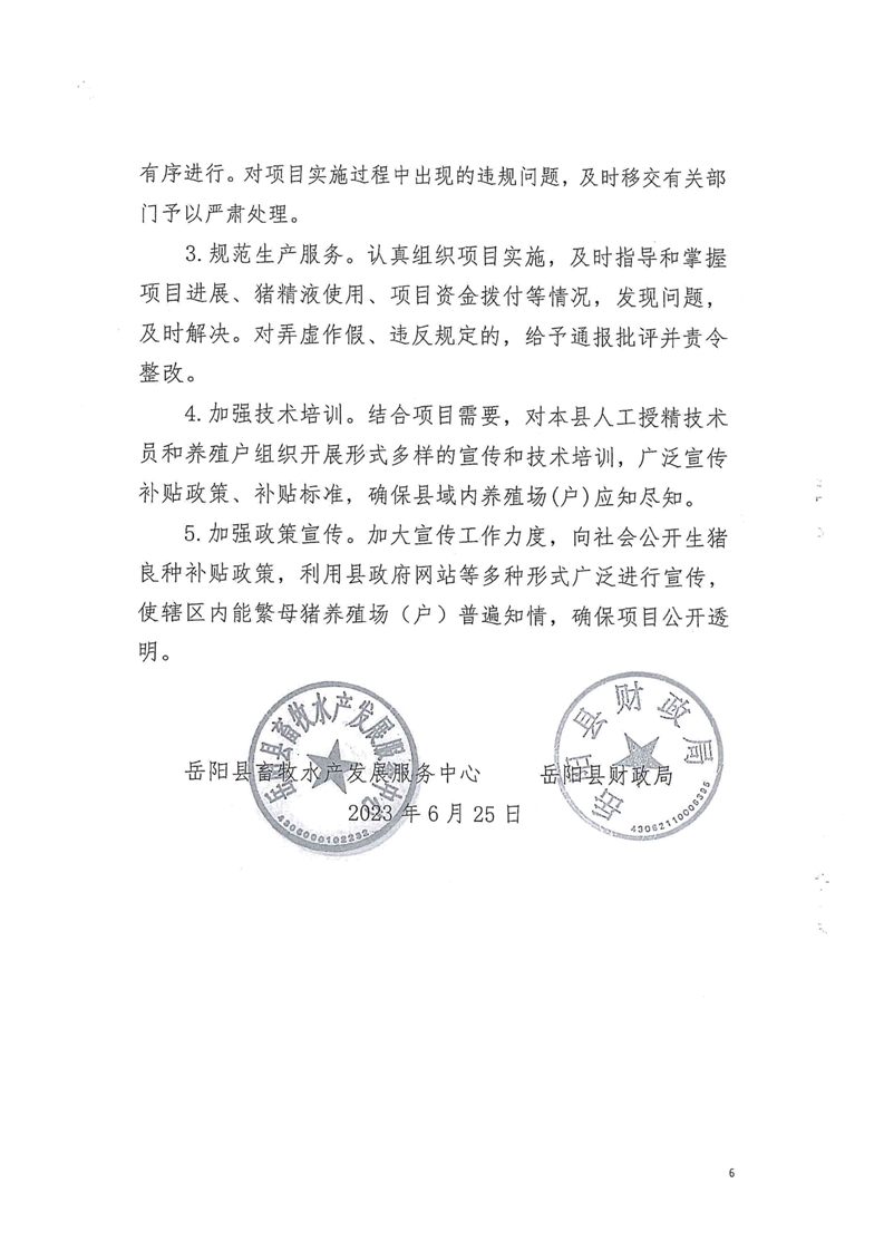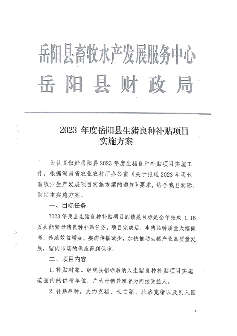 2023年度岳陽縣生豬良種補貼項目實施方案