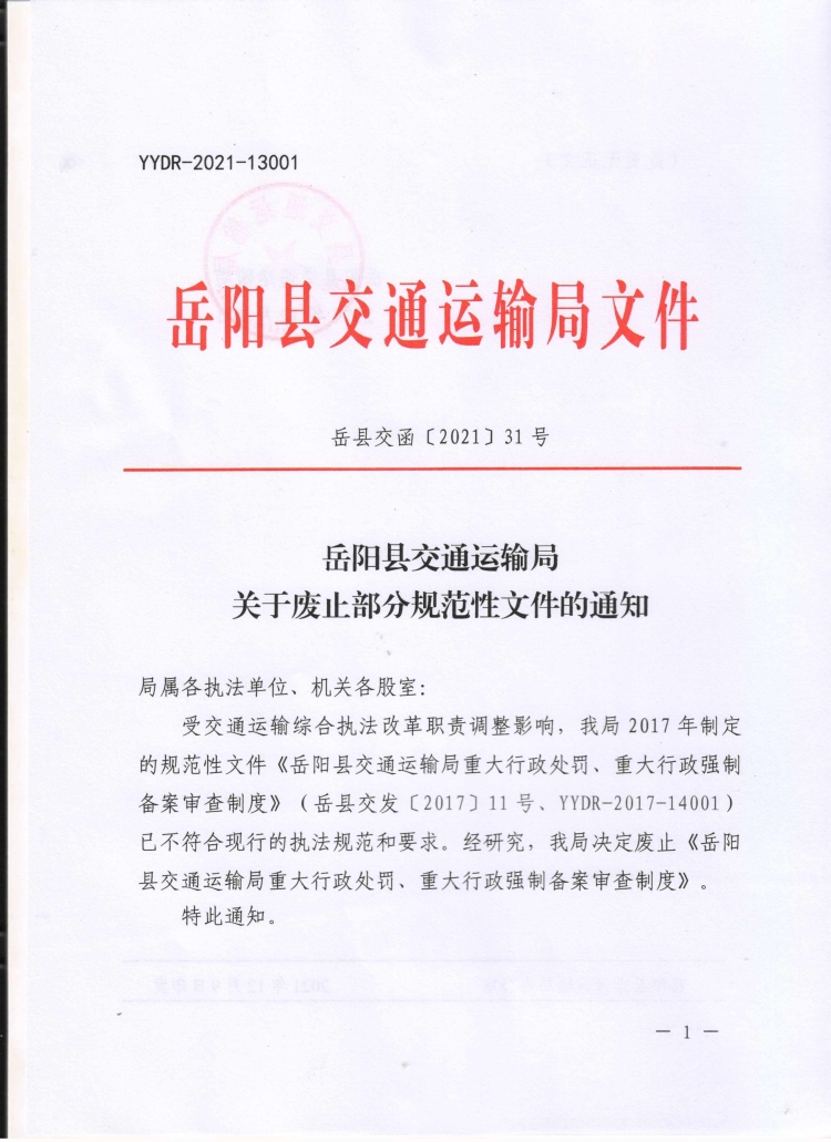 岳陽縣交通運輸局關于廢止部分規(guī)范性文件的通知