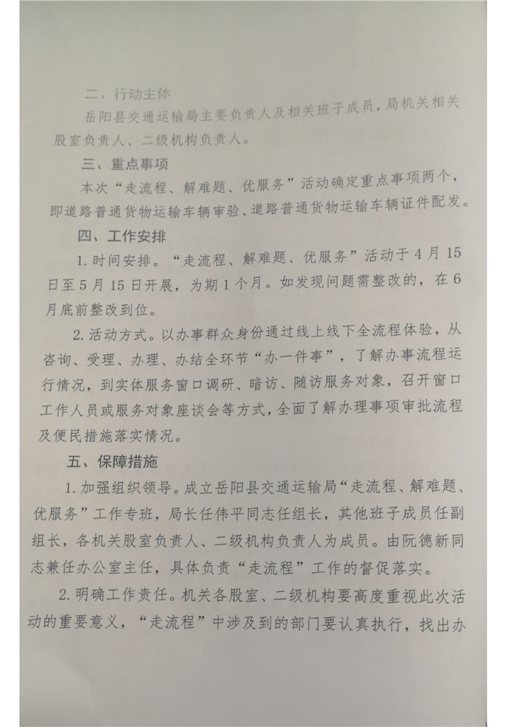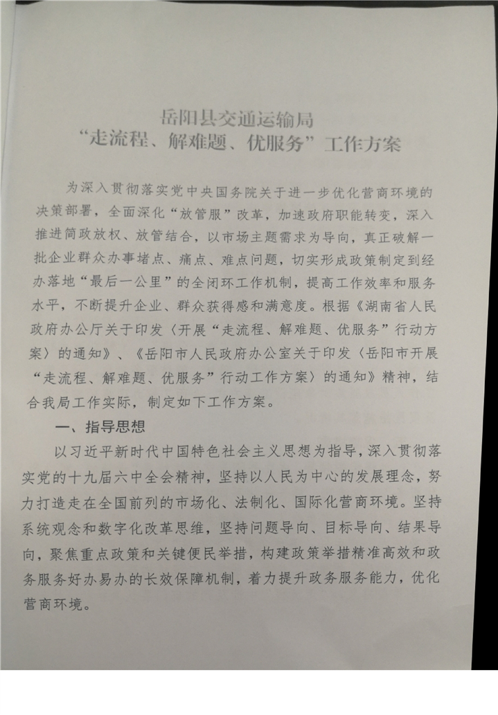 關(guān)于印發(fā)《岳陽(yáng)縣交通運(yùn)輸局“走流程、解難題、優(yōu)服務(wù)工作方案》的通知