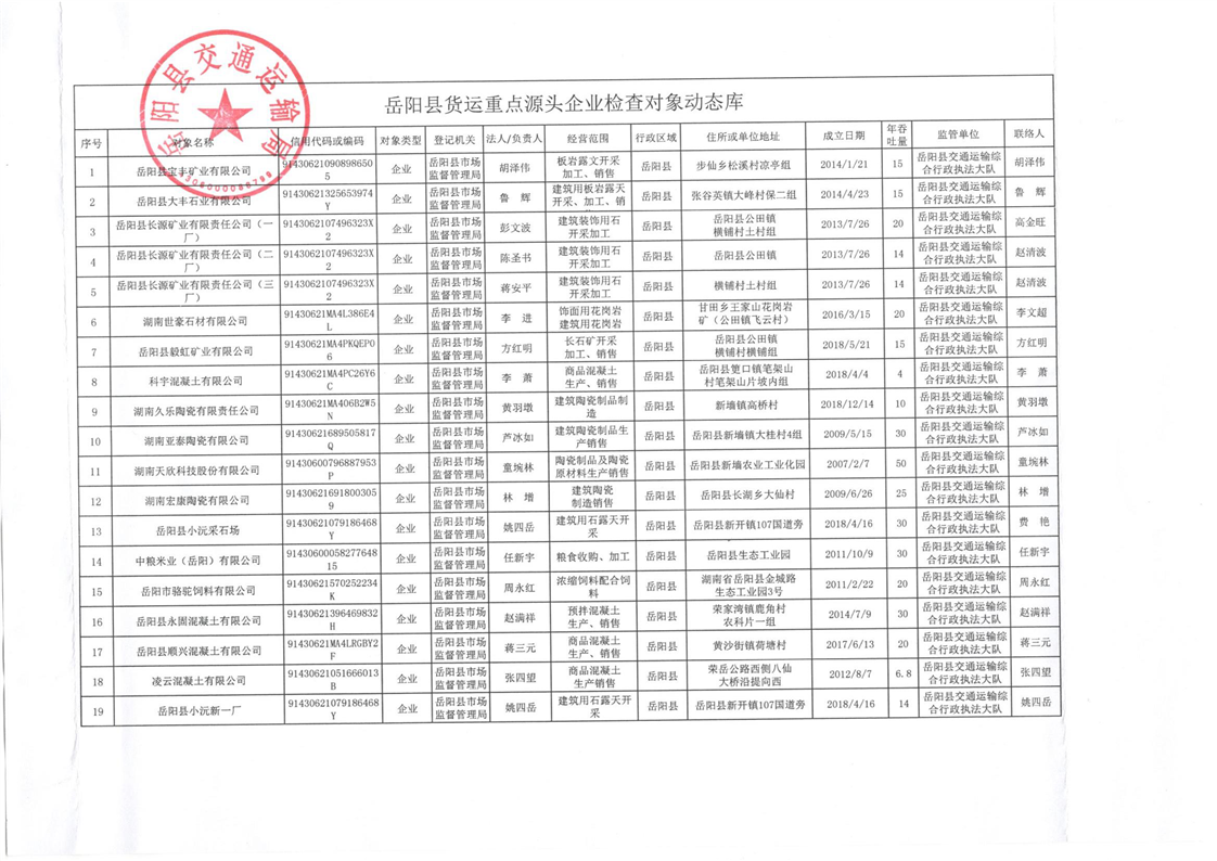岳陽縣貨運(yùn)源頭企業(yè)檢查對象動態(tài)庫