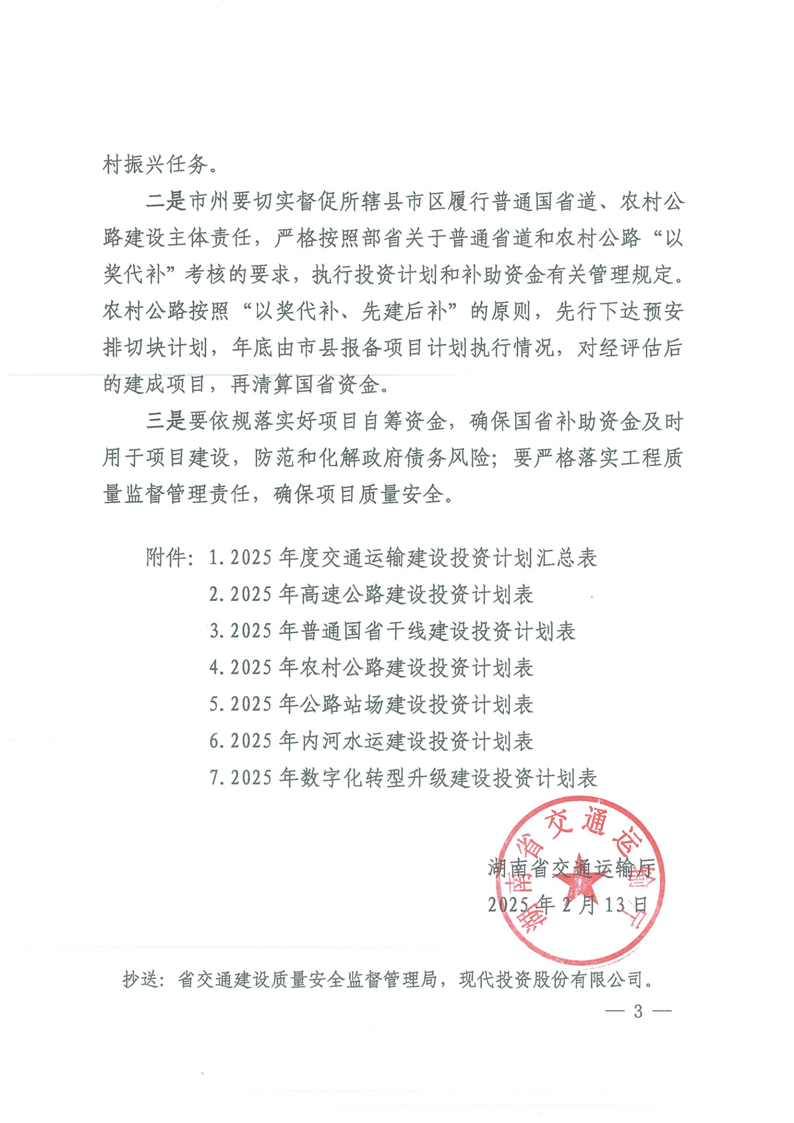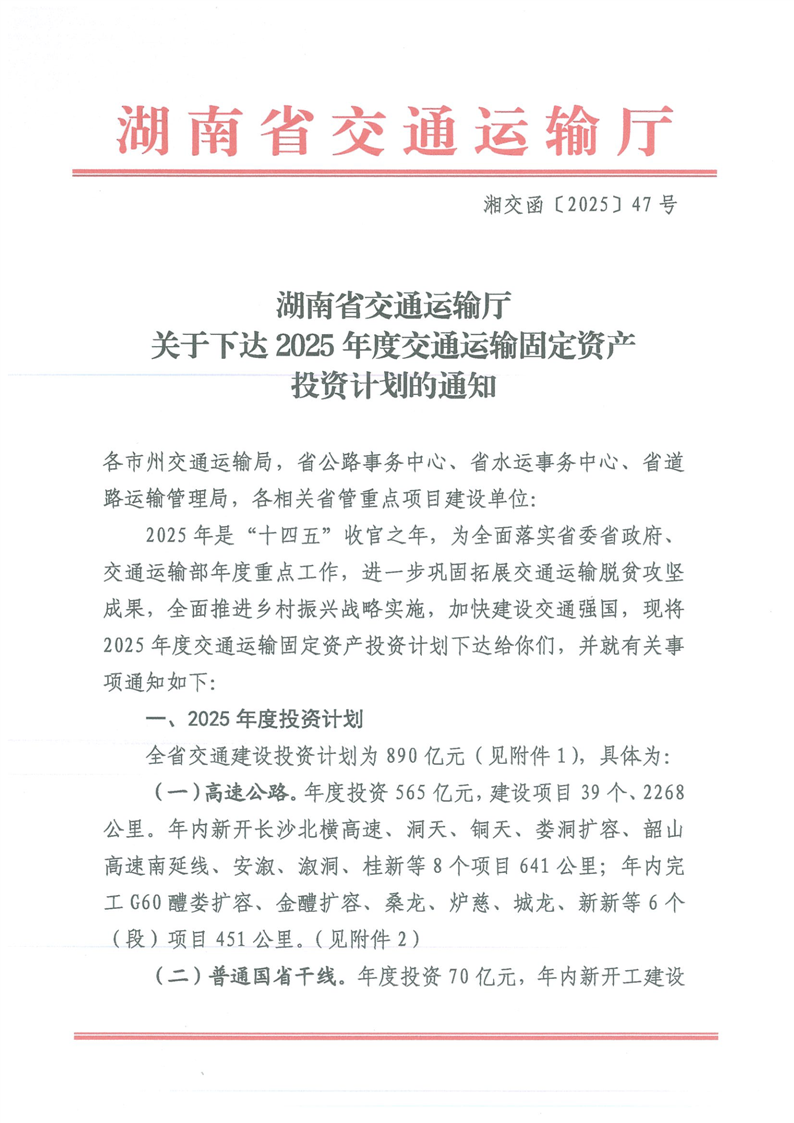 關(guān)于下達(dá)2025年交通運(yùn)輸固定資產(chǎn)投資計(jì)劃的通知(湘交函〔2025〕47號(hào)).pdf