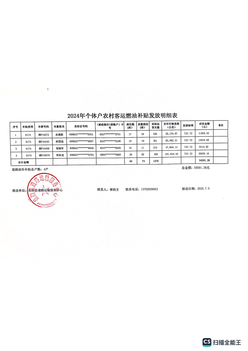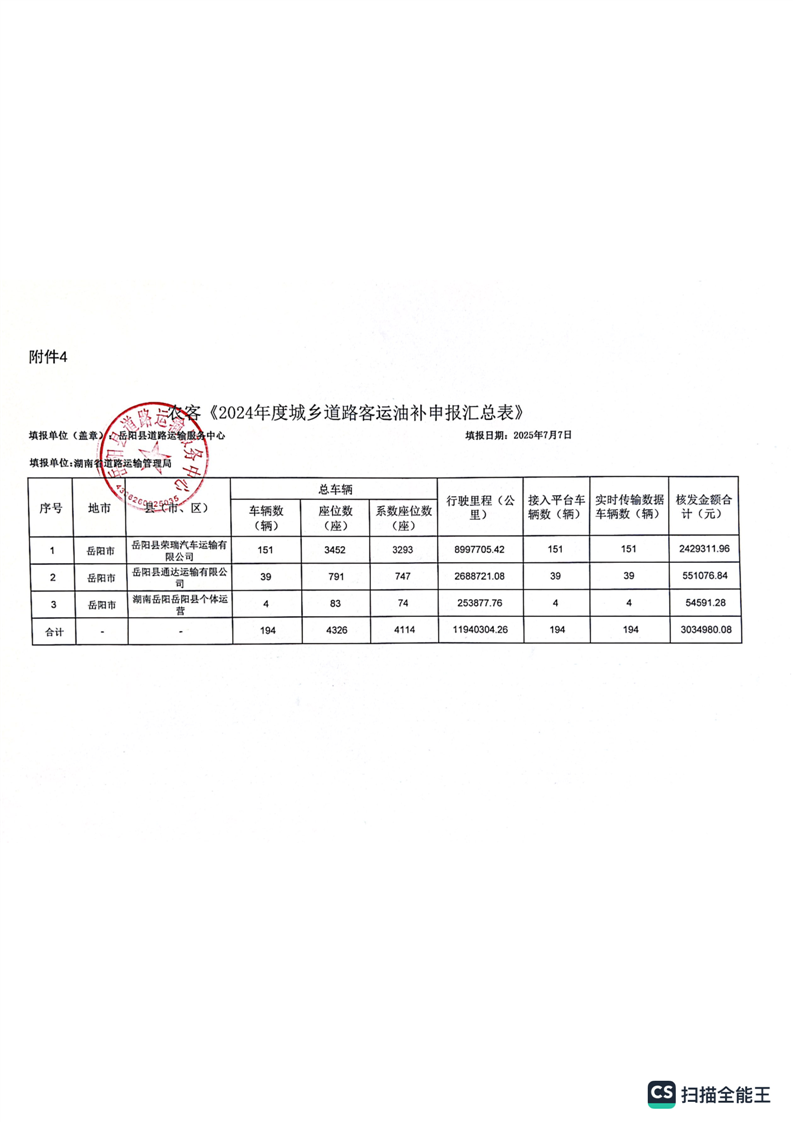 2025年發(fā)放2024年度岳陽縣城鄉(xiāng)道路客運(yùn)油補(bǔ)