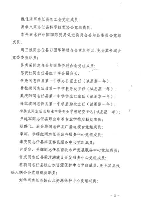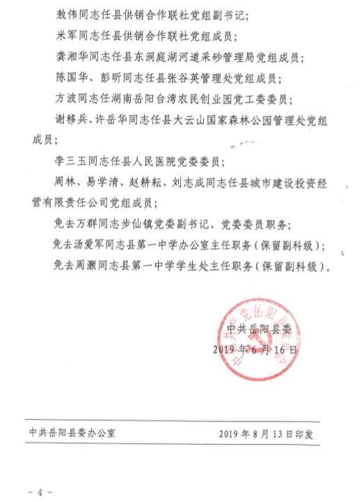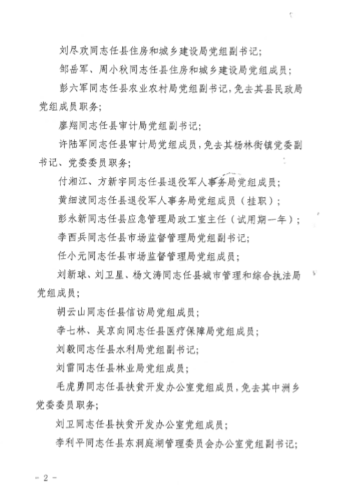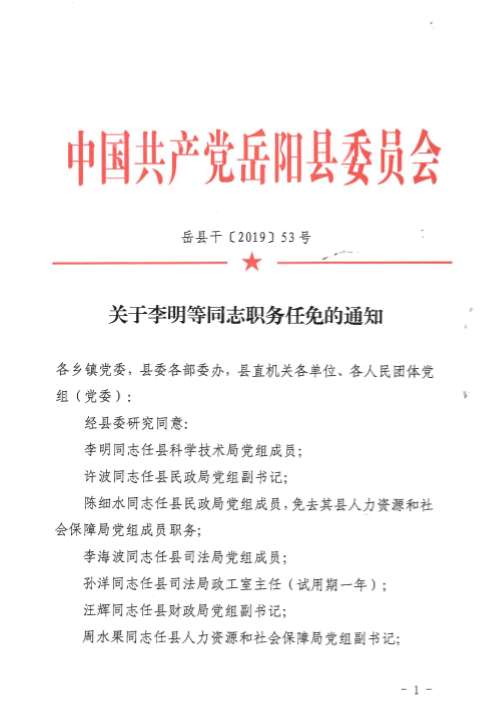 關(guān)于岳陽縣委縣政府對住建局班子成員任免的通知