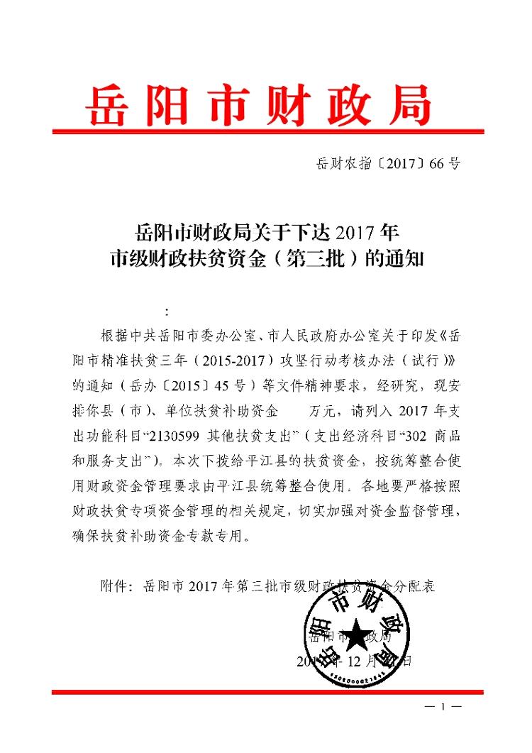 岳陽市第三批市級財政扶貧資金分配表(岳陽縣)