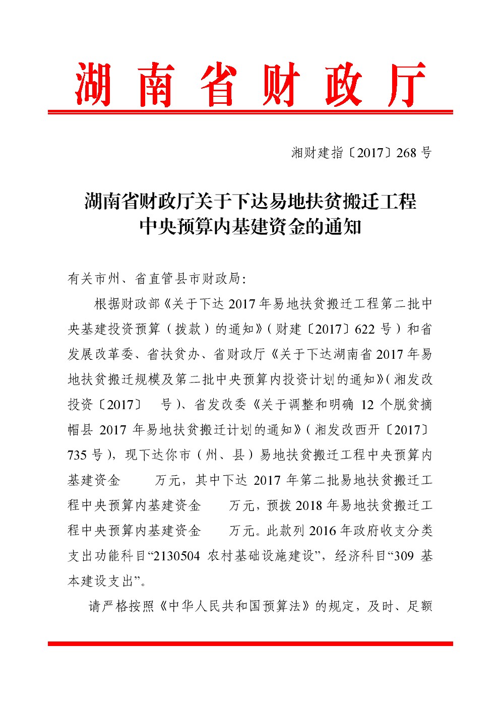 2017年易地扶貧搬遷工程中央預(yù)算內(nèi)基建資金明細(xì)表(岳陽縣)