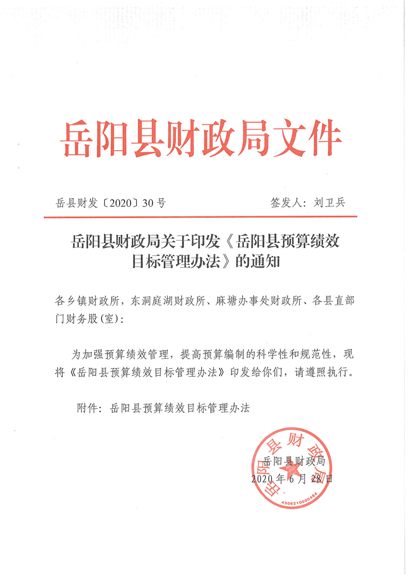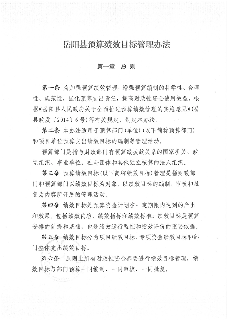 岳陽縣財政局關(guān)于印發(fā)《岳陽縣預(yù)算績效目標管理辦法》的通知 (圖)