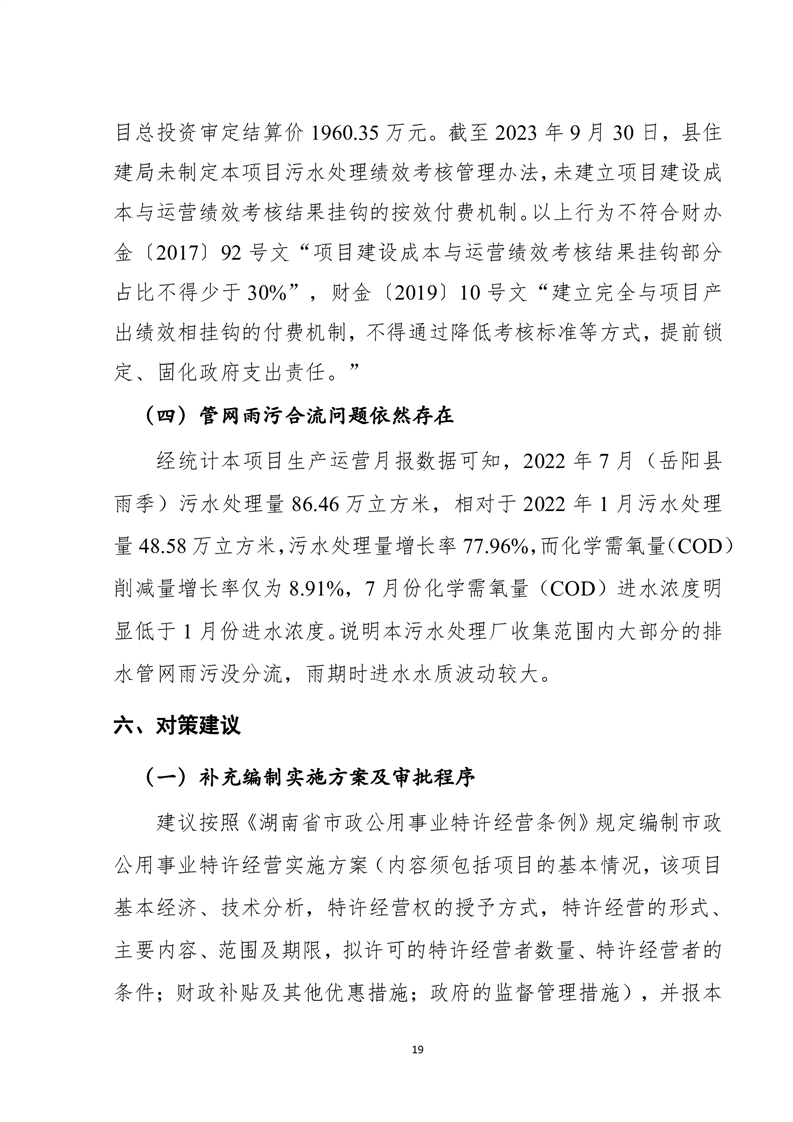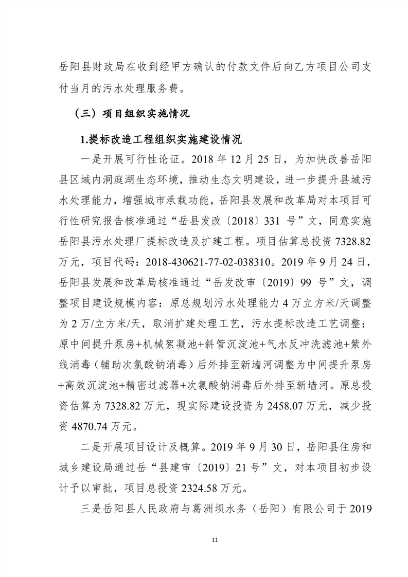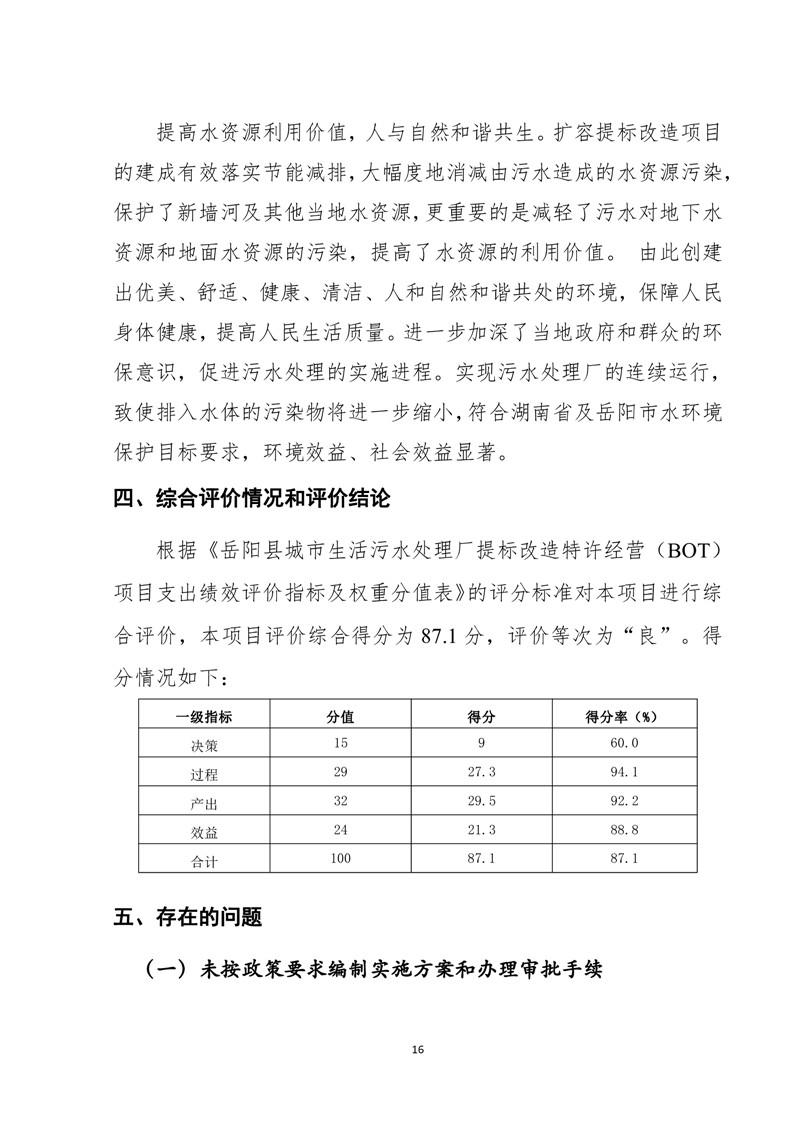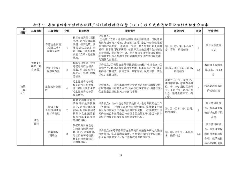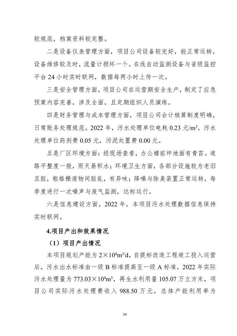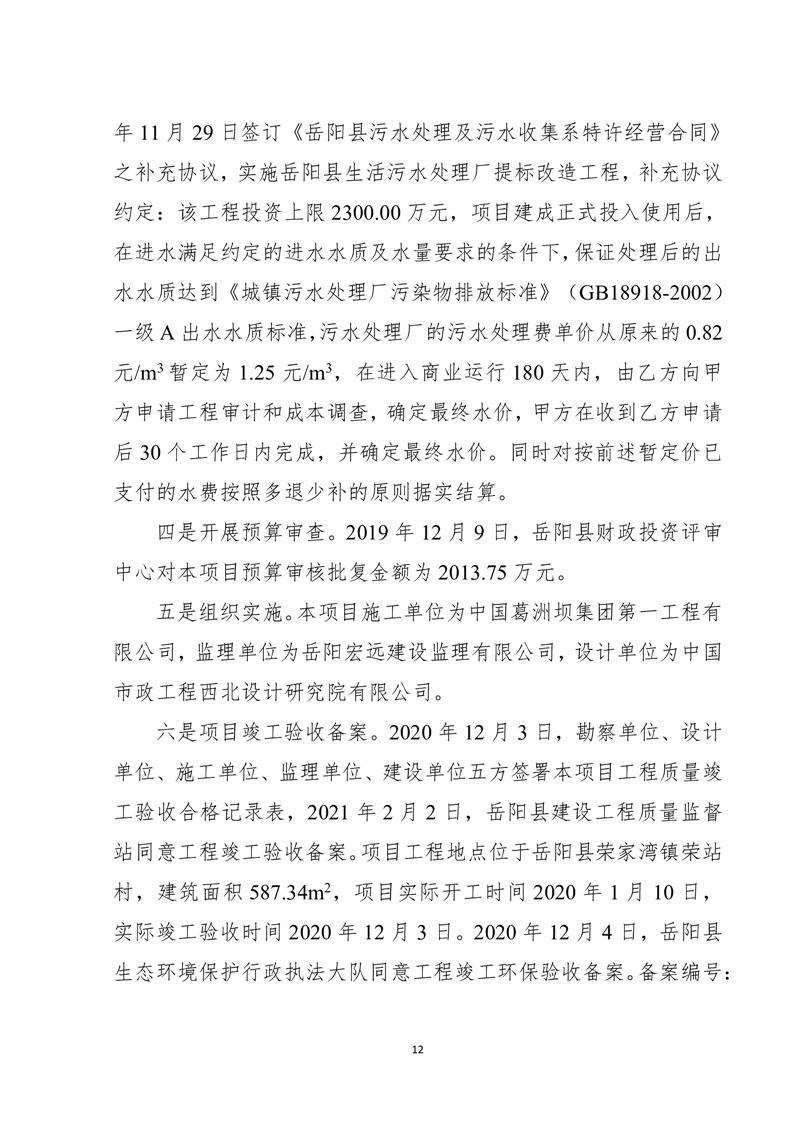 岳陽縣2022年城市生活污水處理廠運營期項目支出績效評價報告