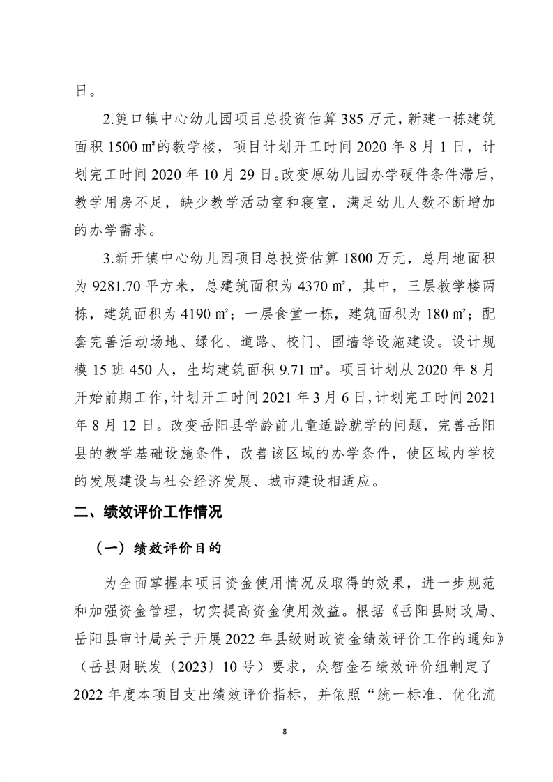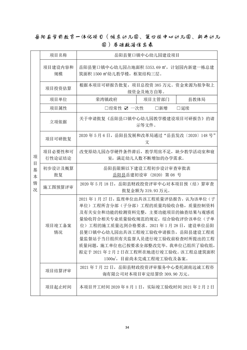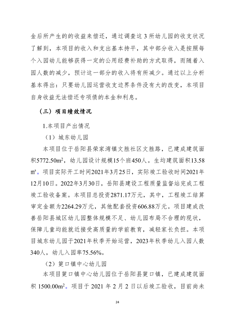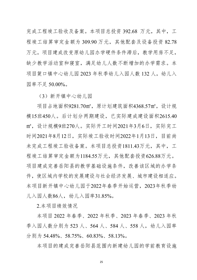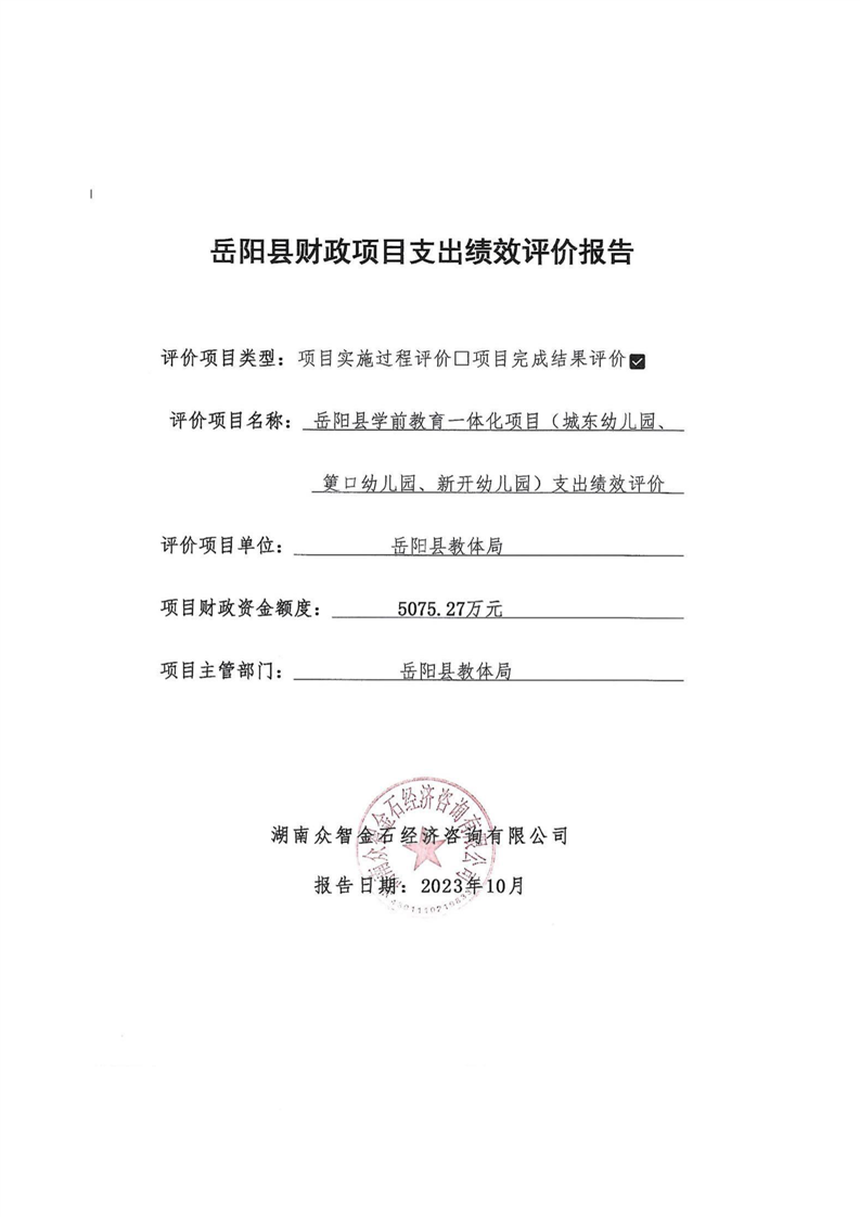 岳陽(yáng)縣城東幼兒園、筻口幼兒園、新開(kāi)幼兒園工程項(xiàng)目支出績(jī)效評(píng)價(jià)報(bào)告