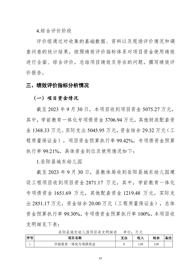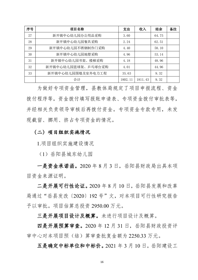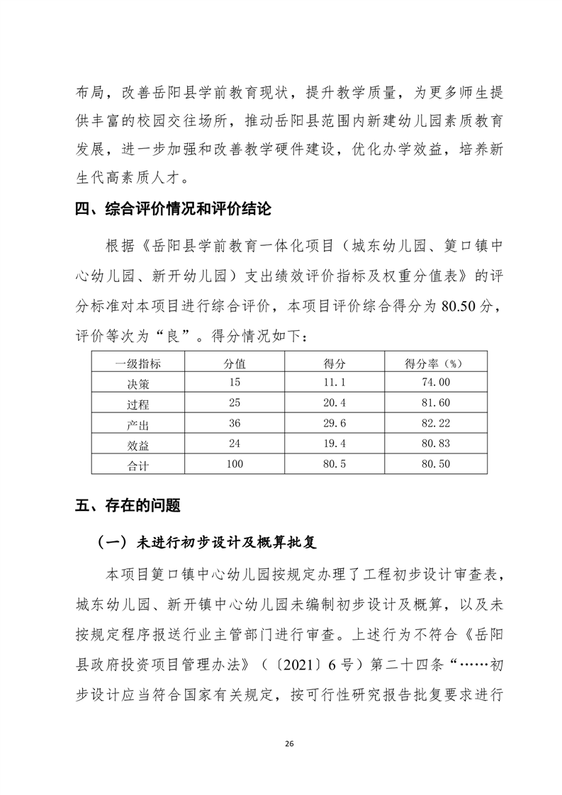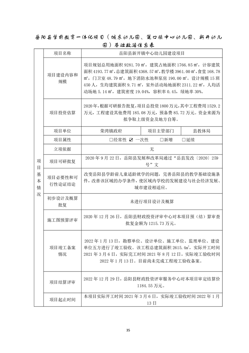 岳陽(yáng)縣城東幼兒園、筻口幼兒園、新開(kāi)幼兒園工程項(xiàng)目支出績(jī)效評(píng)價(jià)報(bào)告