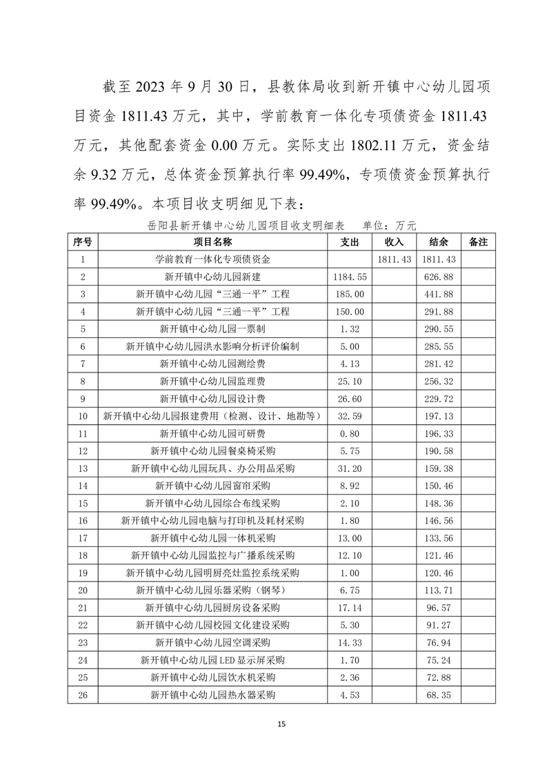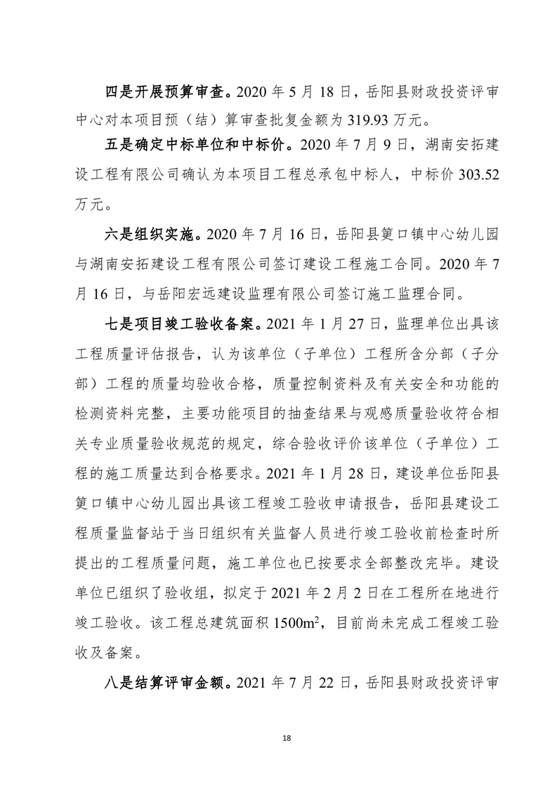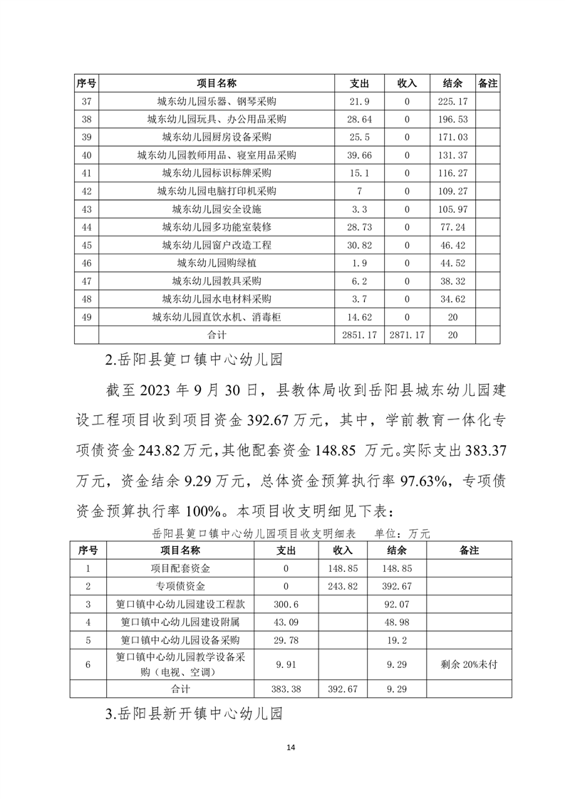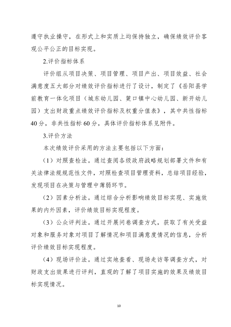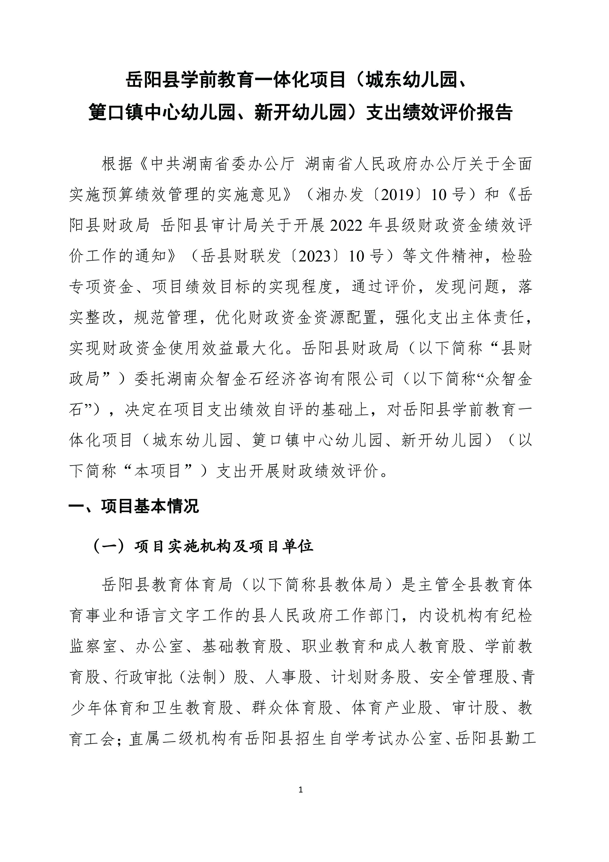 岳陽(yáng)縣城東幼兒園、筻口幼兒園、新開(kāi)幼兒園工程項(xiàng)目支出績(jī)效評(píng)價(jià)報(bào)告