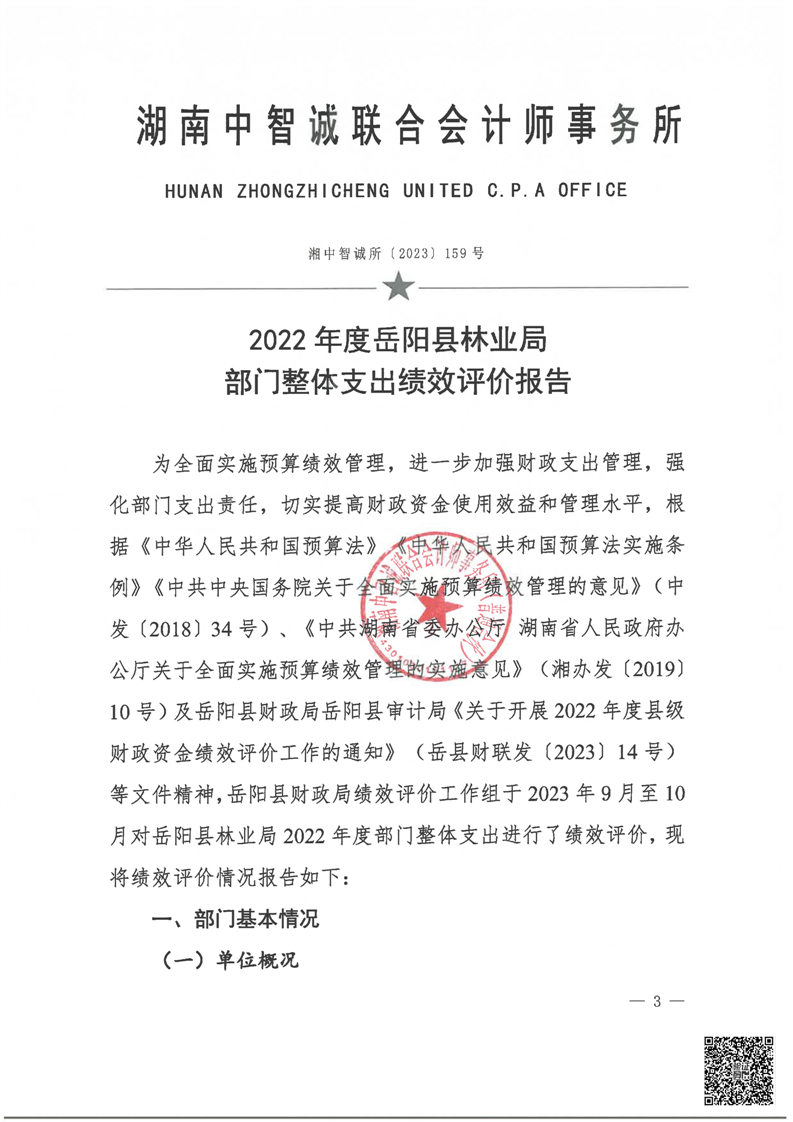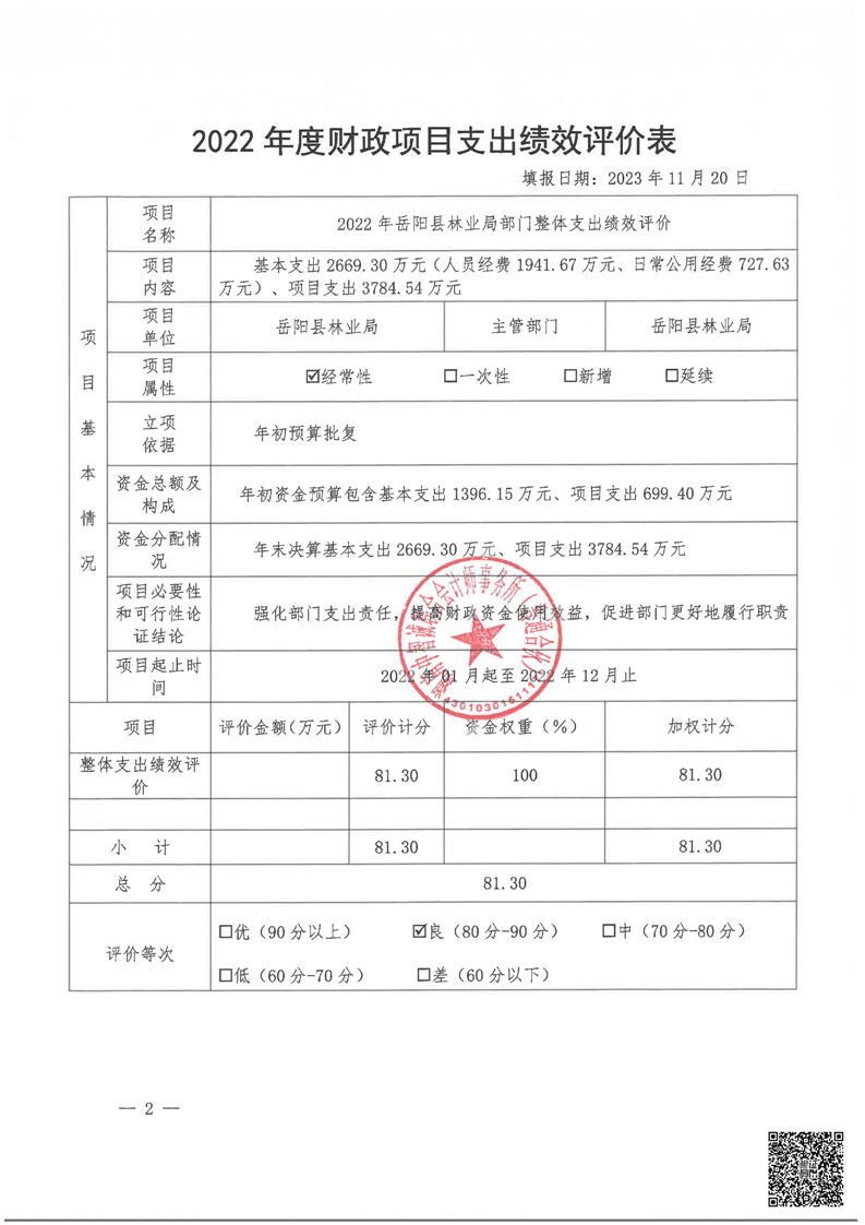 縣林業(yè)局2022年度部門整體支出績效評(píng)價(jià)報(bào)告