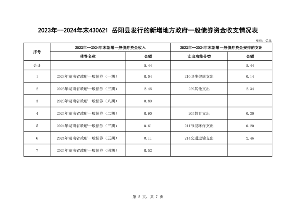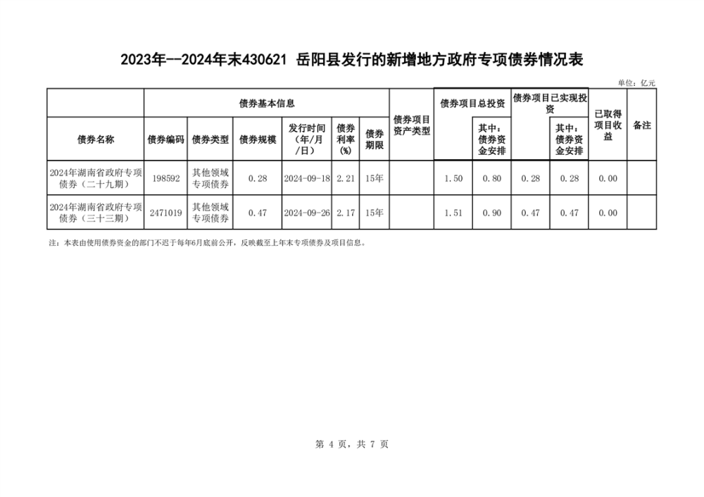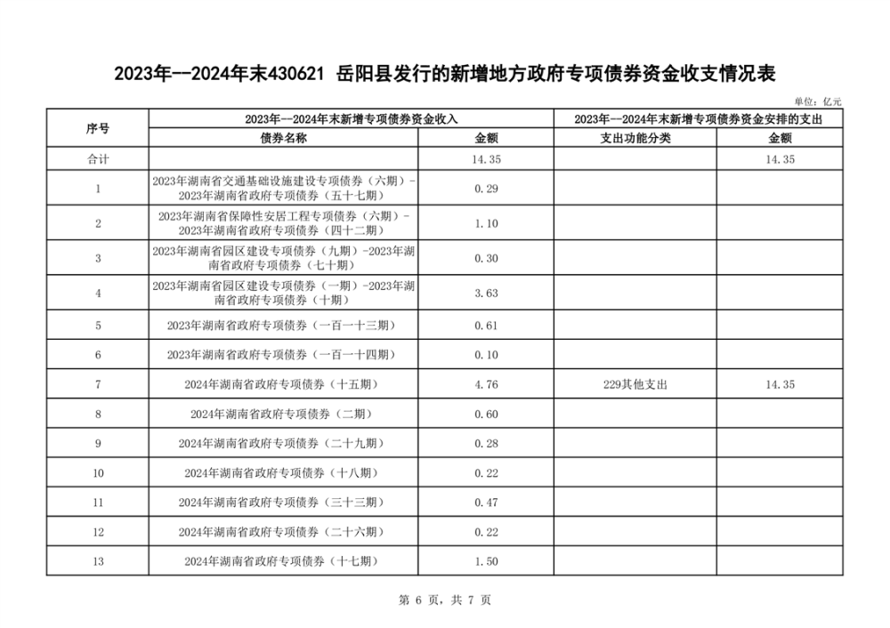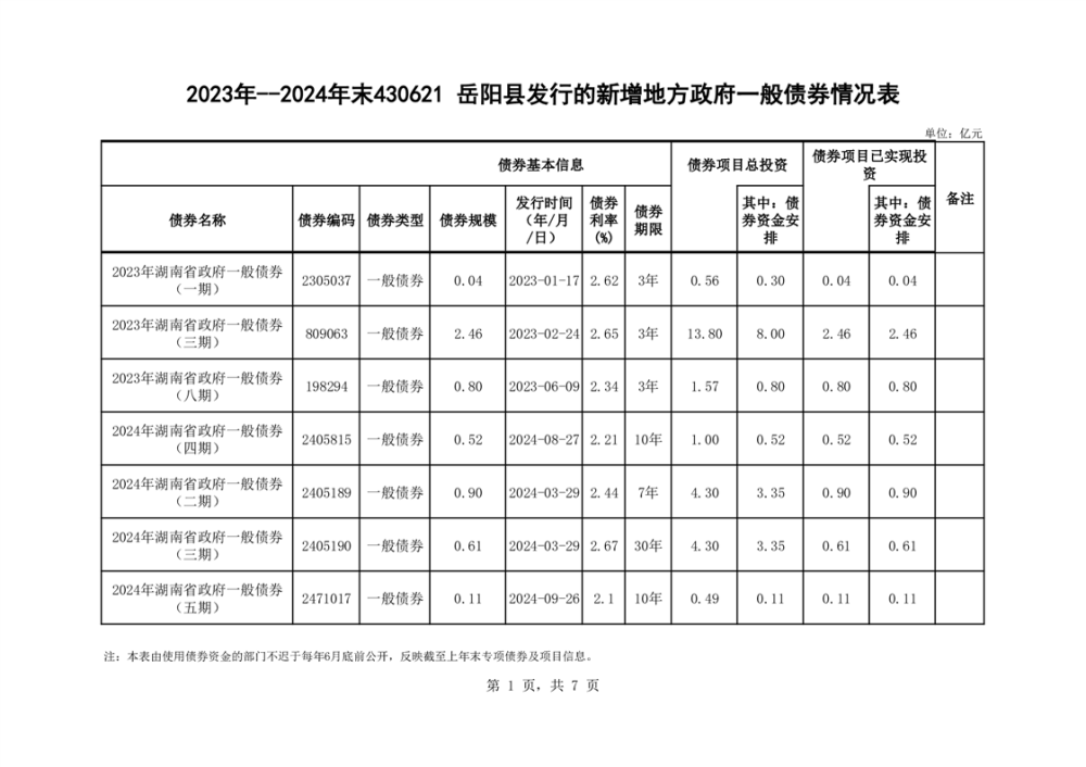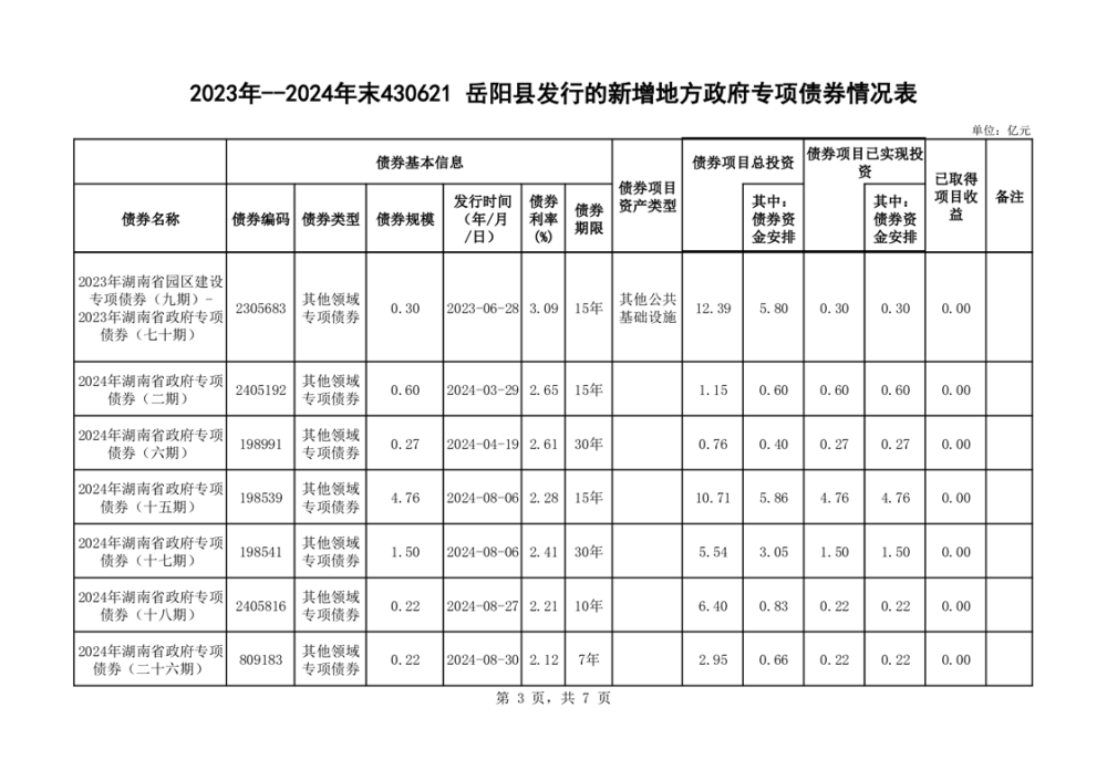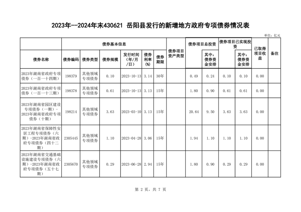 岳陽縣2023-2024年發(fā)行的新增地方政府債券存續(xù)期公開表