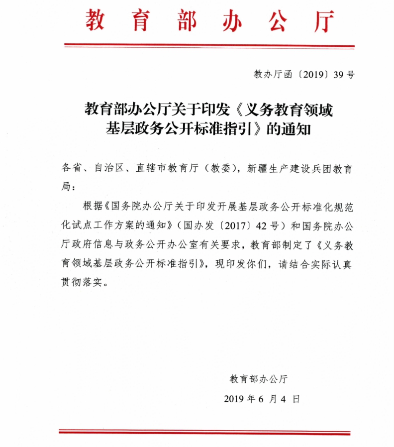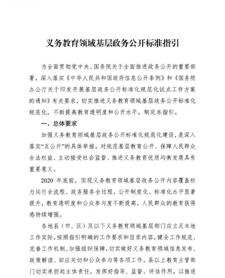 轉(zhuǎn)發(fā)教育部辦公廳關(guān)于印發(fā)《義務(wù)教育領(lǐng)域基層政務(wù)公開標(biāo)準(zhǔn)指引》的通知