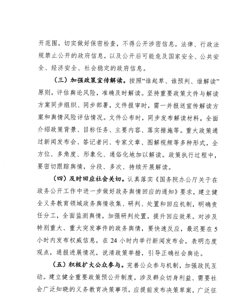 二、請(qǐng)各單位對(duì)照《通知》明確的工作要求和指引目錄內(nèi)容,認(rèn)真做好義務(wù)教育領(lǐng)域信息發(fā)布,并結(jié)合自身實(shí)際適當(dāng)拓寬公開范圍和公開內(nèi)容。