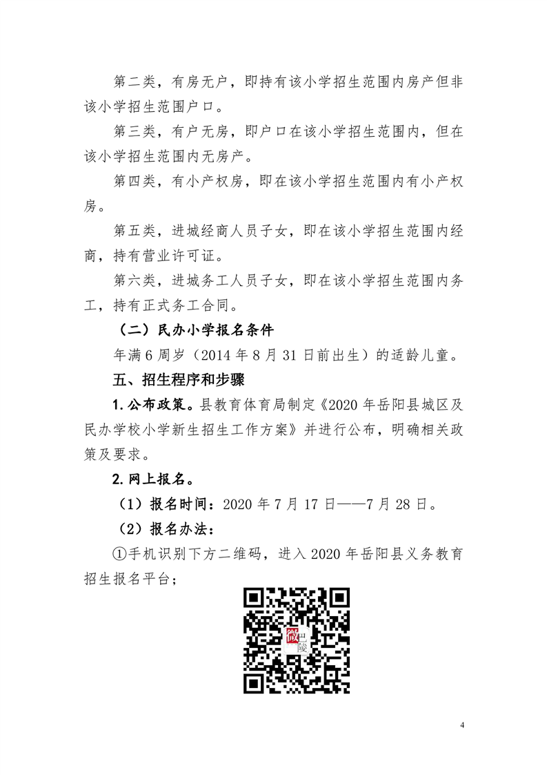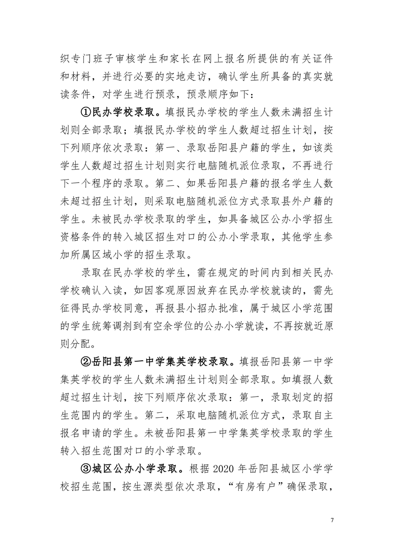 2020年岳陽縣城區(qū)及民辦學(xué)校小學(xué)新生招生工作方案
