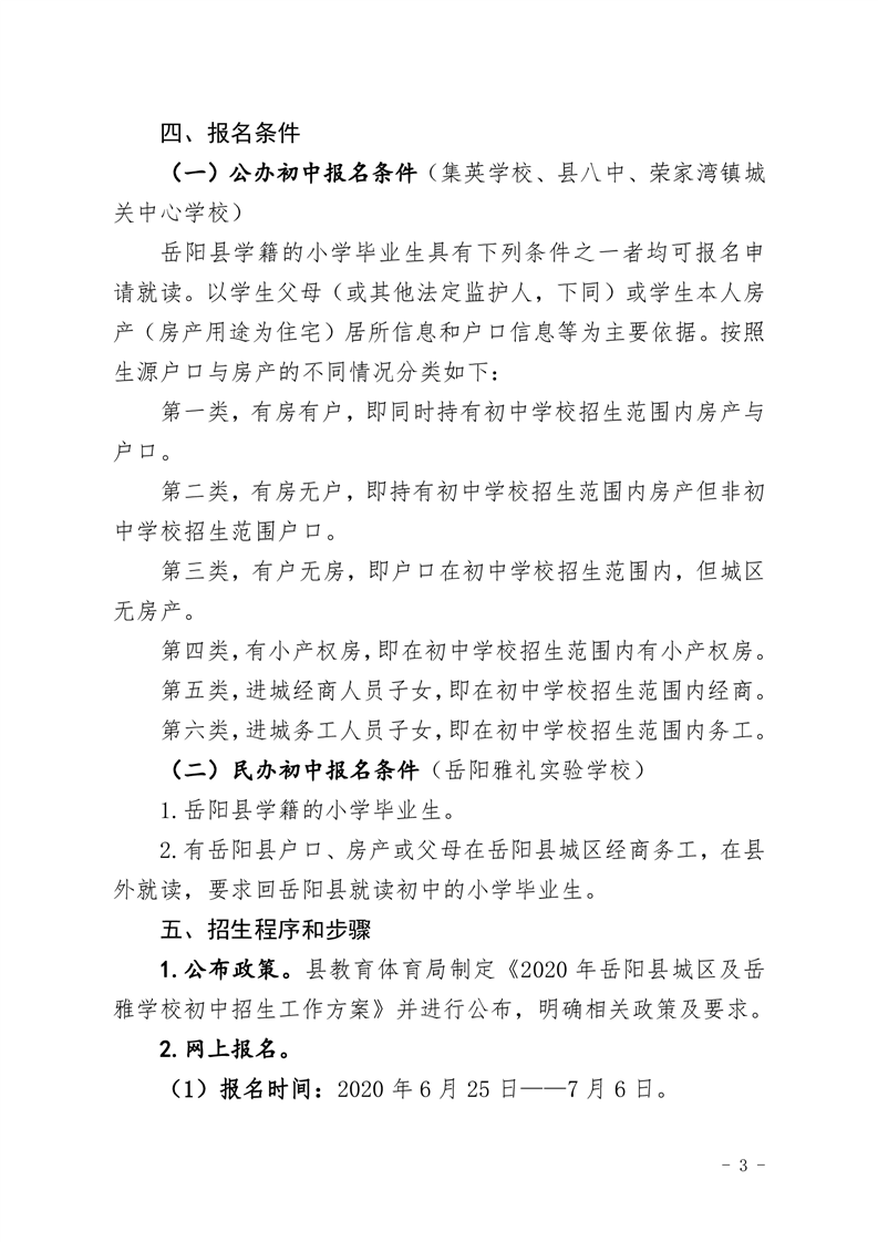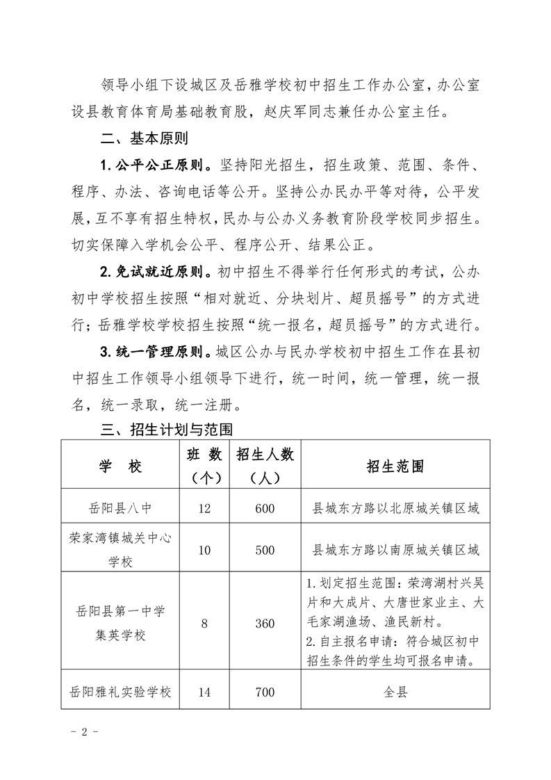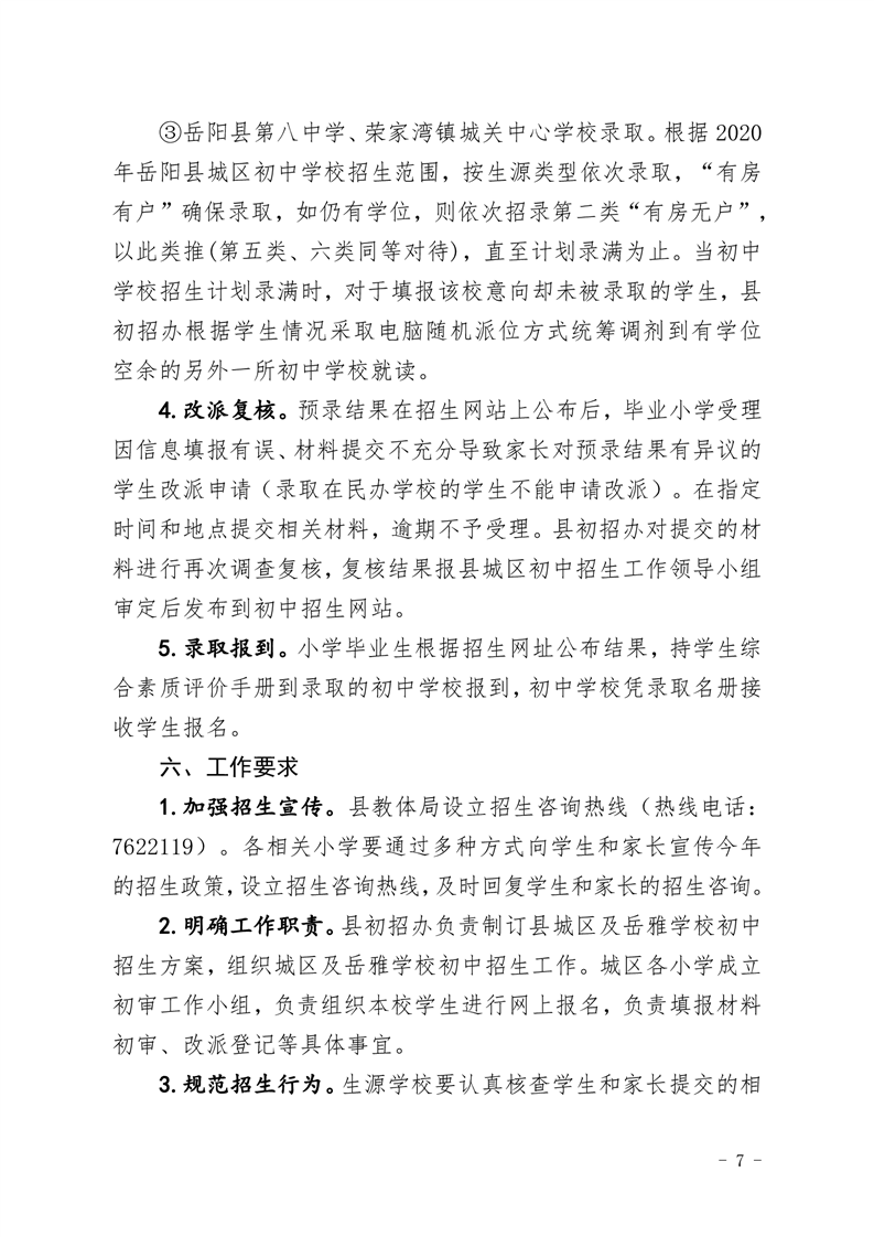 2020年岳陽縣城區(qū)及岳雅學(xué)校初中招生工作方案