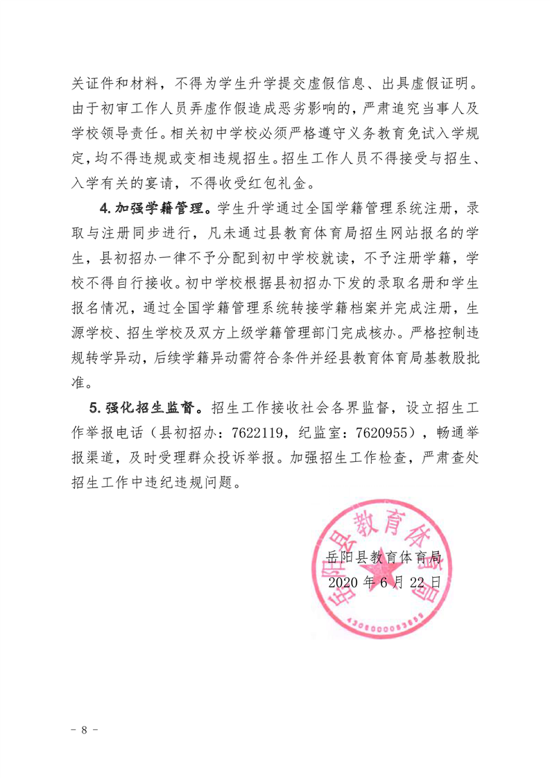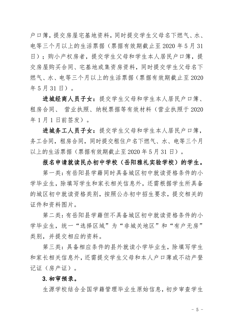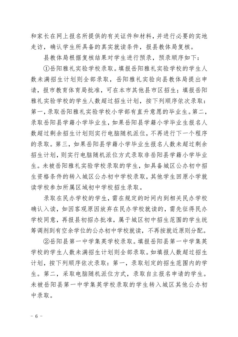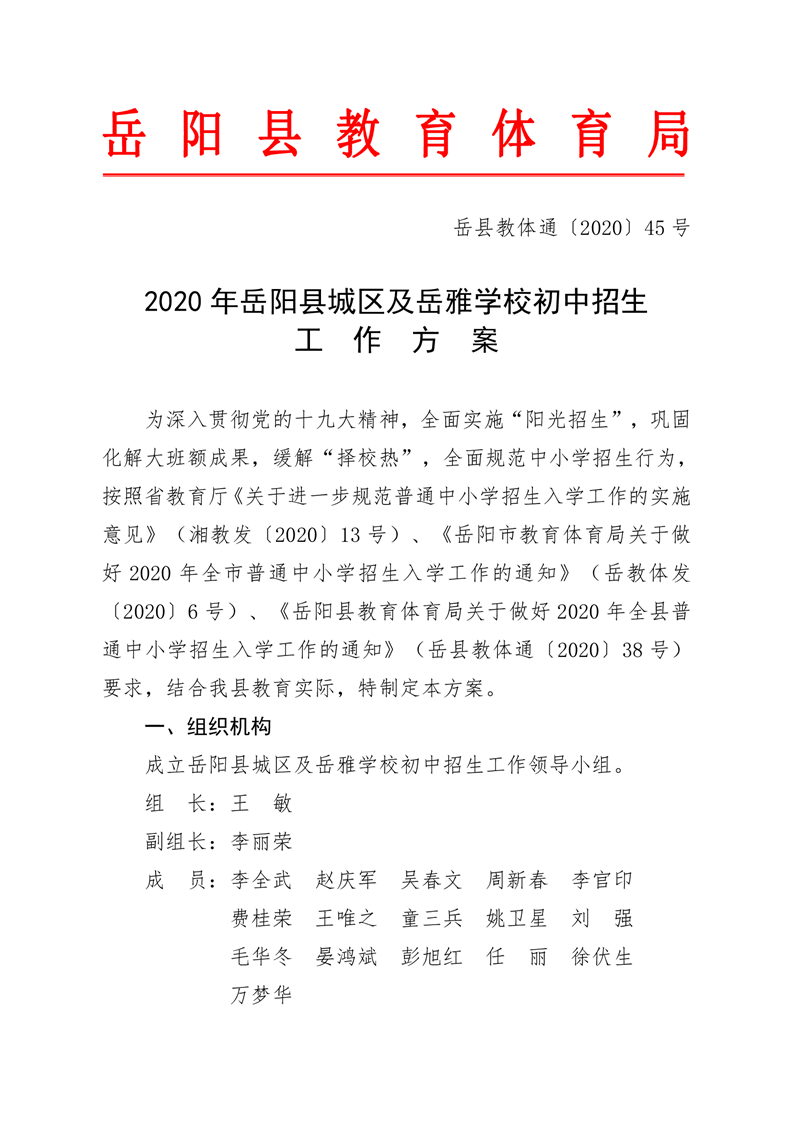 2020年岳陽縣城區(qū)及岳雅學(xué)校初中招生工作方案