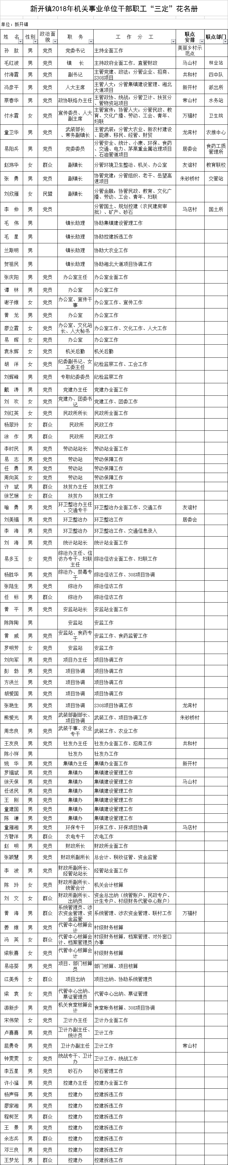 新開鎮(zhèn)2018年機關(guān)事業(yè)單位干部職工“三定”花名冊