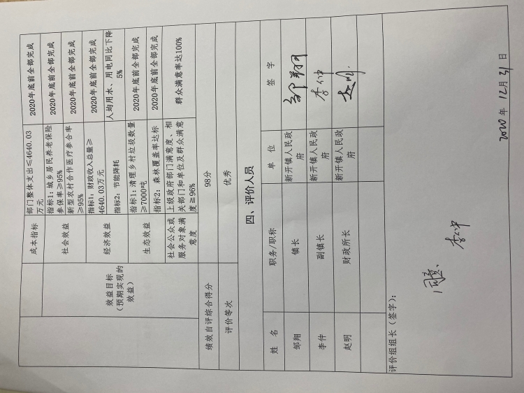 新開鎮(zhèn)2020年度部門整體支出績效評價自評報告