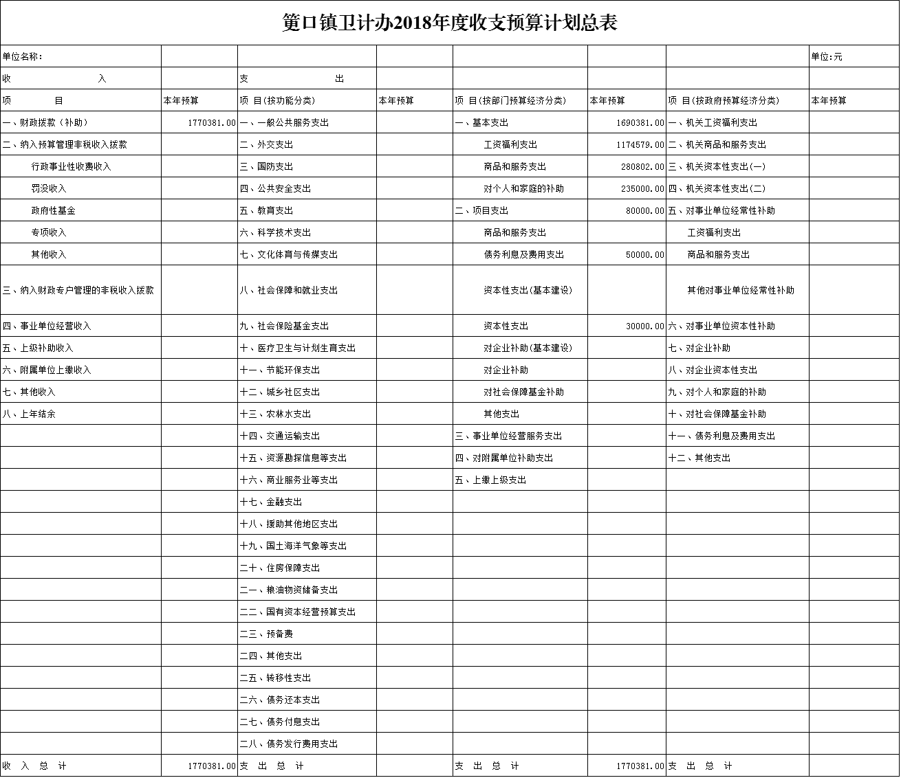 筻口鎮(zhèn)衛(wèi)計辦2018年度收支預算計劃總表