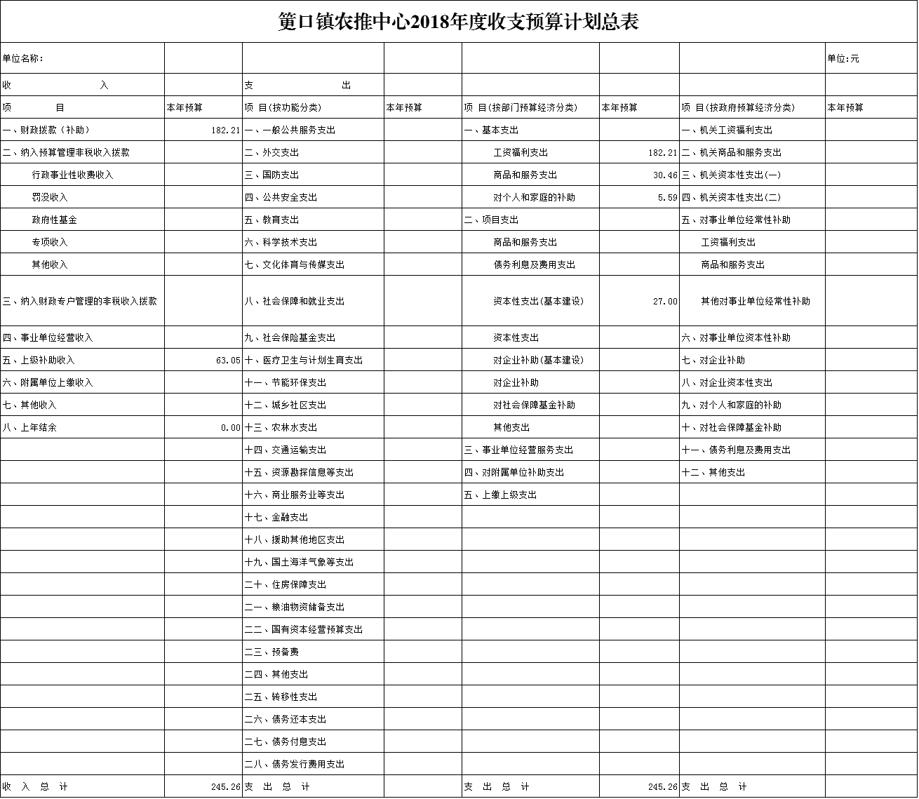 筻口鎮(zhèn)農(nóng)推中心2018年度收支預算計劃總表