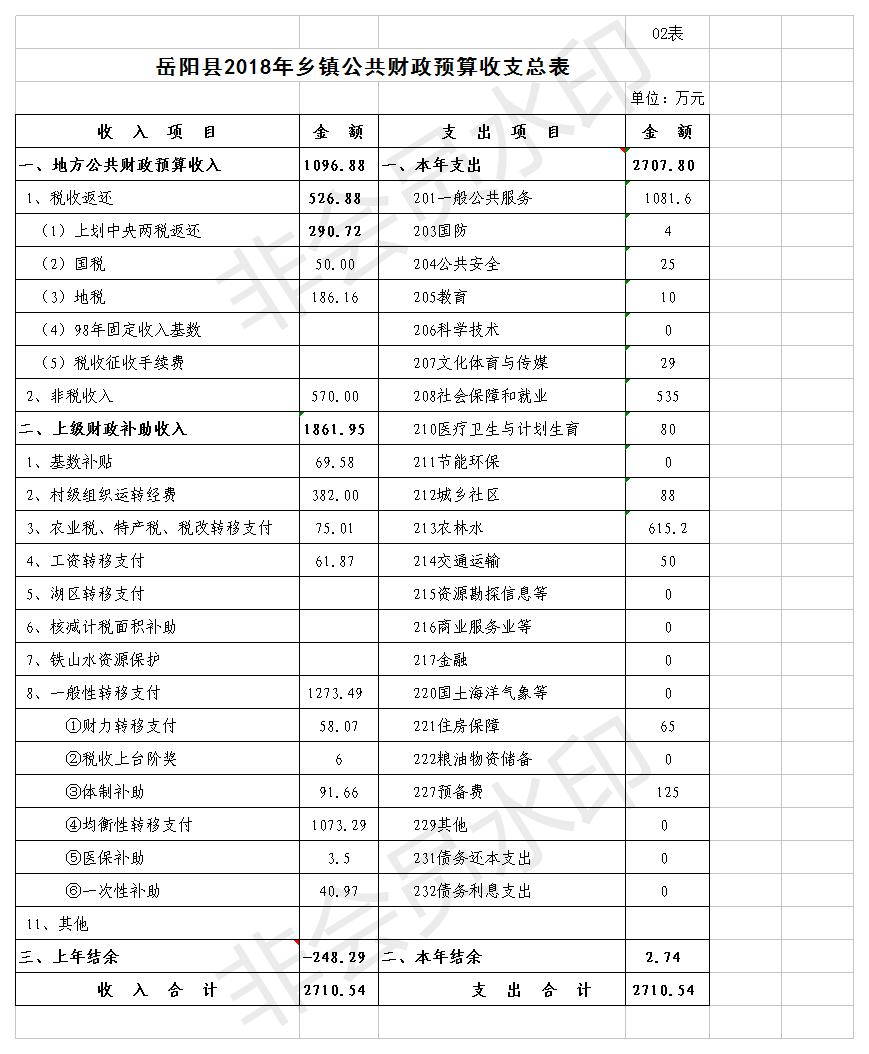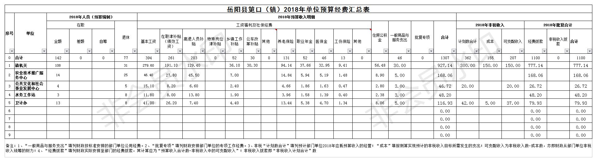 岳陽縣筻口鎮(zhèn)2018年鄉(xiāng)鎮(zhèn)財政總預(yù)算表