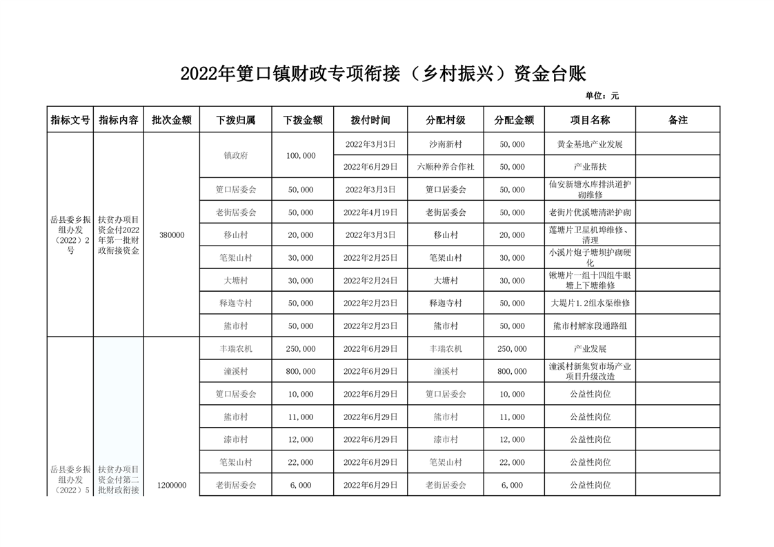 2022年筻口鎮(zhèn)財(cái)政專項(xiàng)銜接(鄉(xiāng)村振興)資金公示