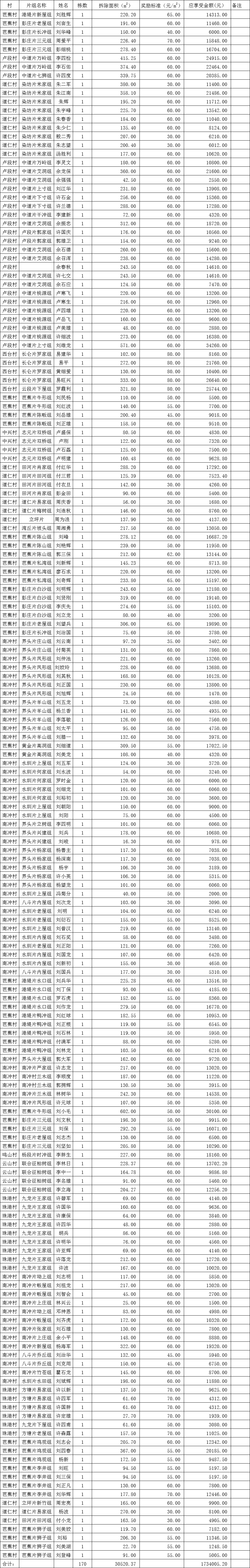毛田鎮(zhèn)“空心房”整治明細(xì)表