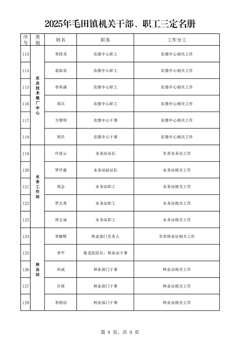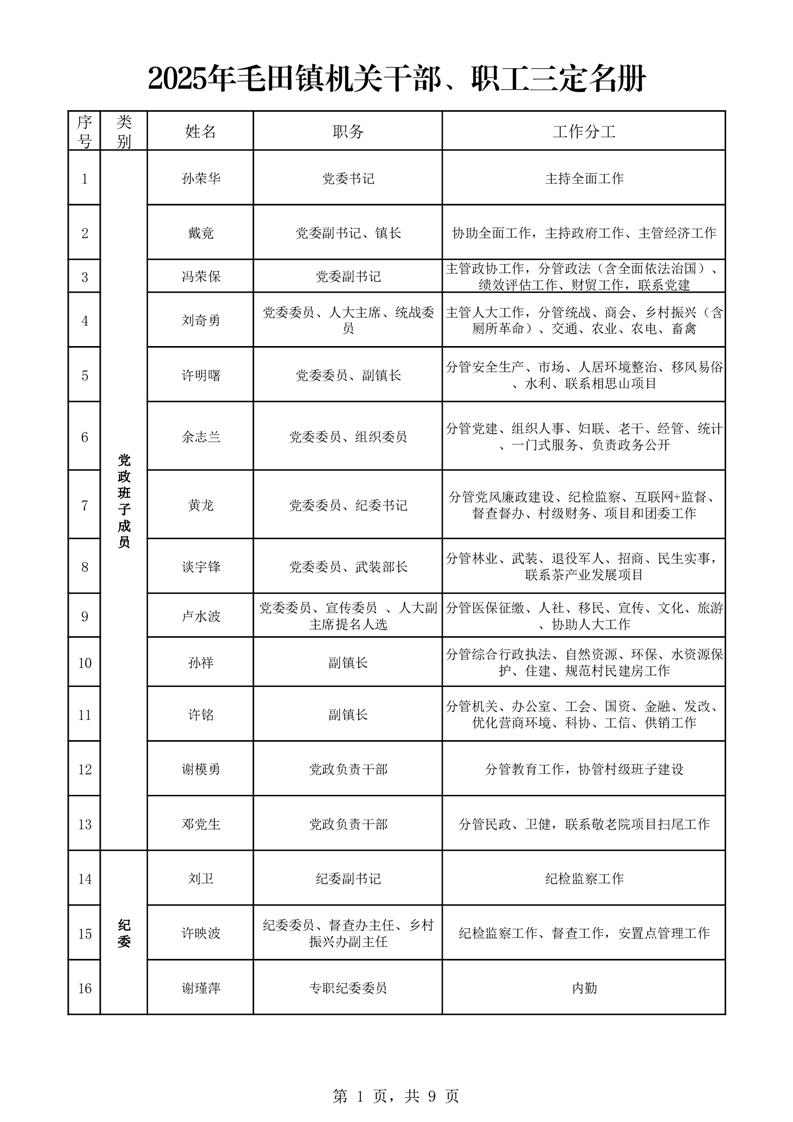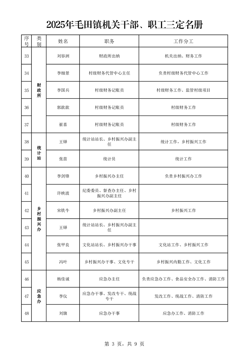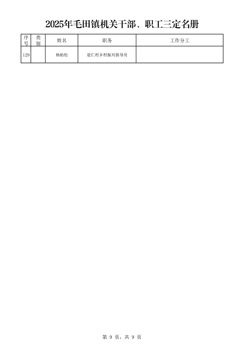 2025年毛田鎮(zhèn)機關(guān)干部、職工三定名冊