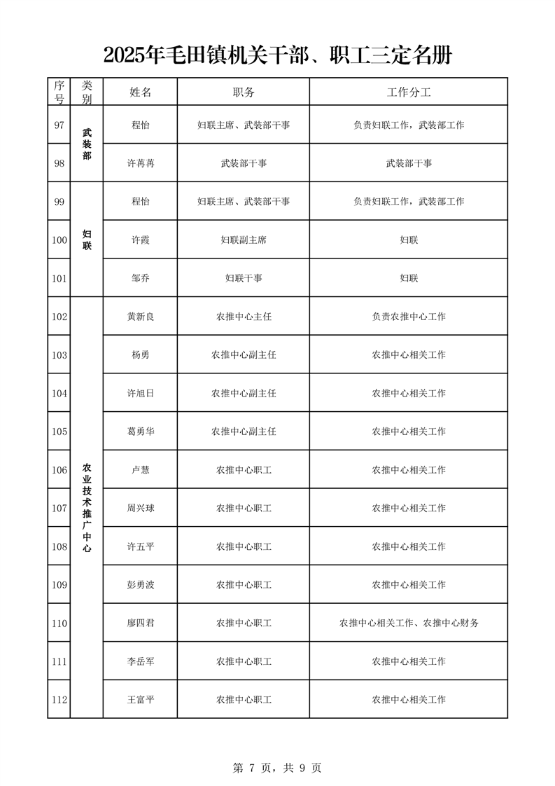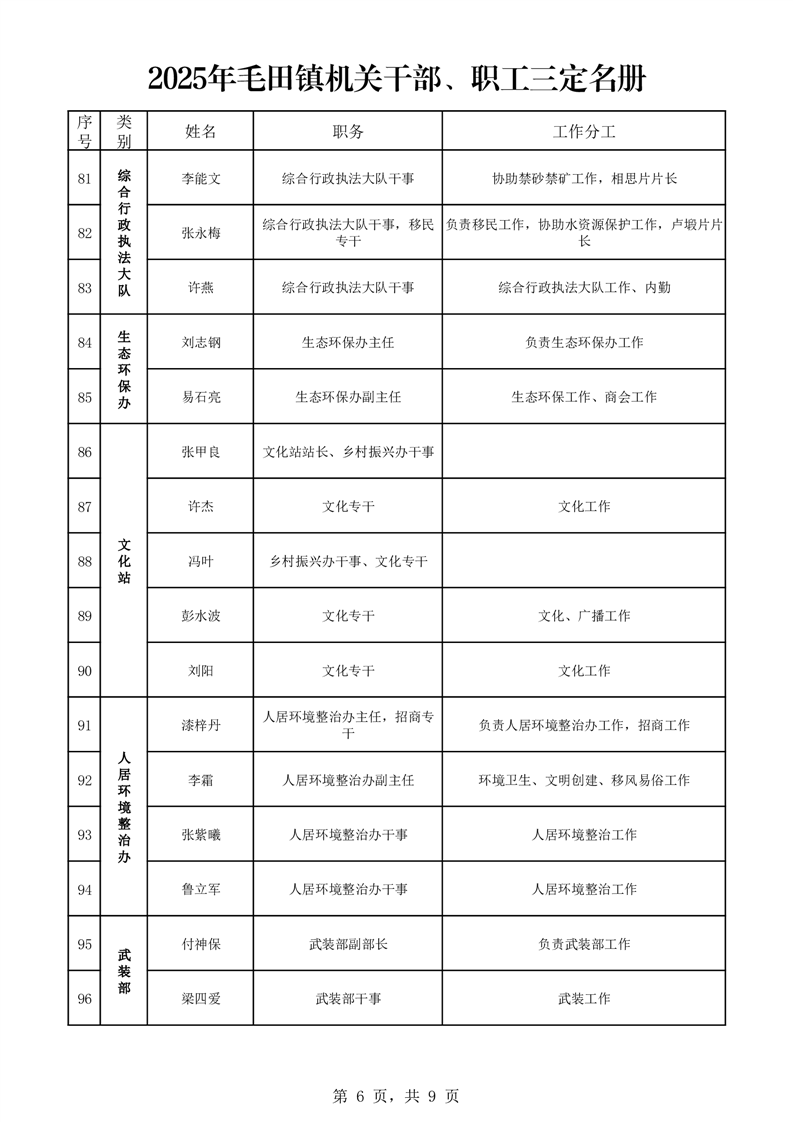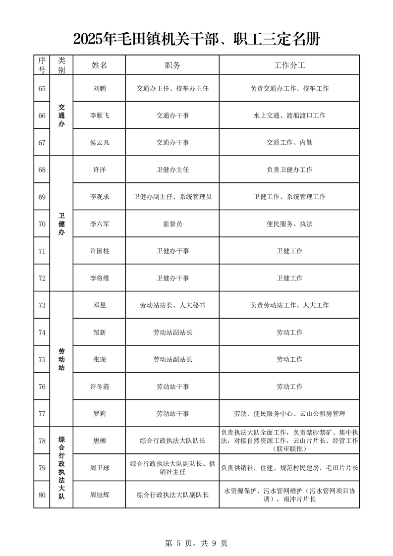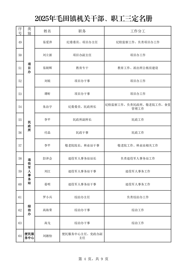 2025年毛田鎮(zhèn)機關(guān)干部、職工三定名冊