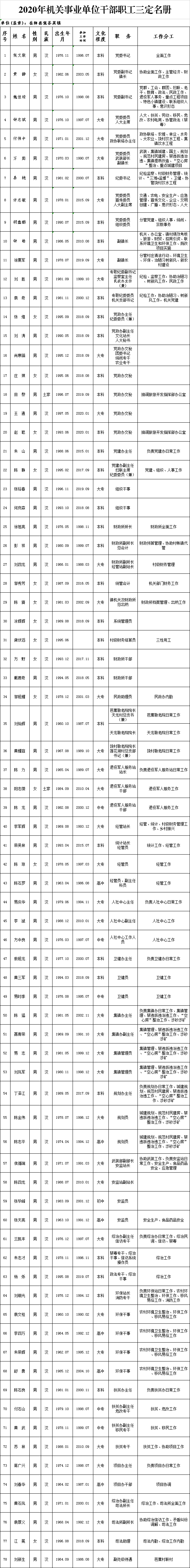 張谷英鎮(zhèn)2020年機關事業(yè)單位干部職工三定名冊