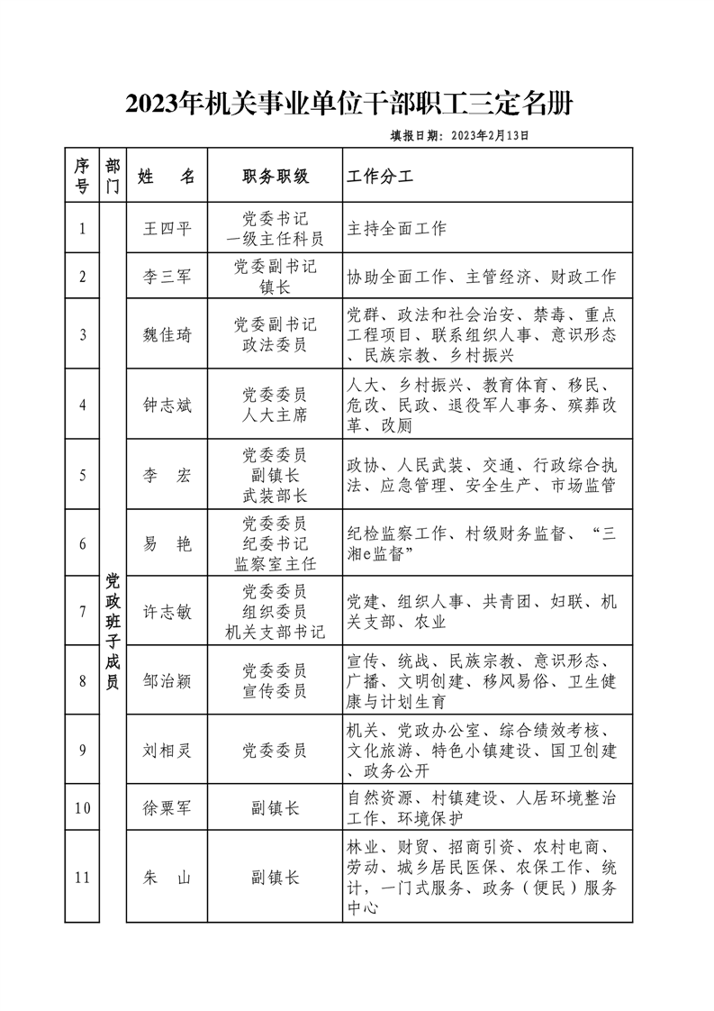 張谷英鎮(zhèn)2023年機(jī)關(guān)事業(yè)單位干部職工三定名冊(cè)