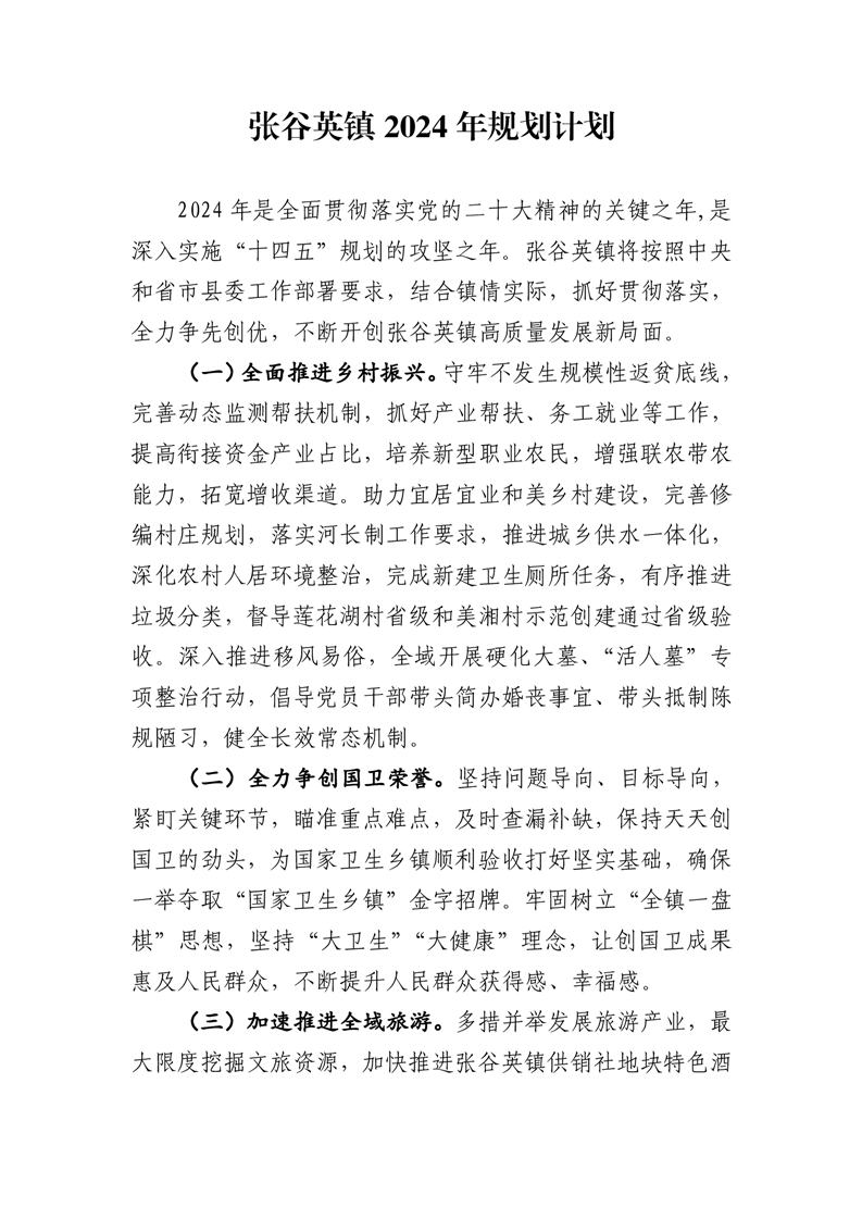 張谷英鎮(zhèn)2024年規(guī)劃計劃