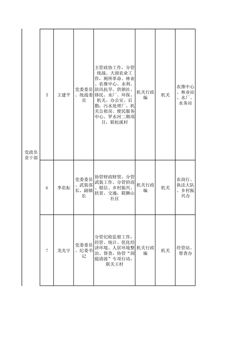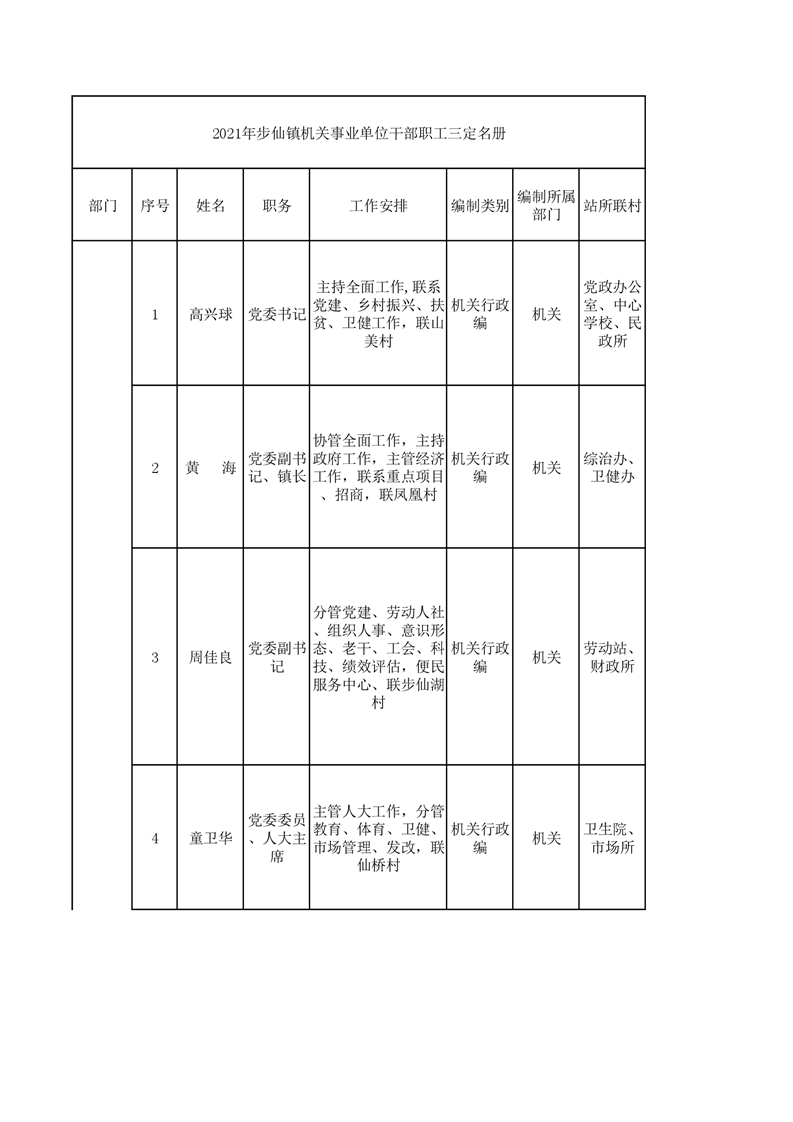 2021年步仙鎮(zhèn)黨政班子成員工作分工
