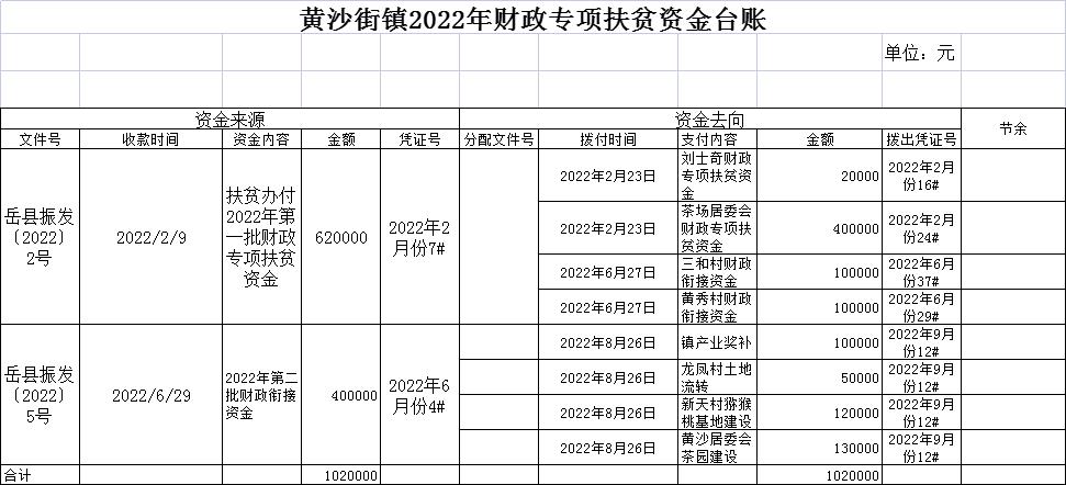 黃沙街鎮(zhèn)2022年財政專項扶貧資金臺賬