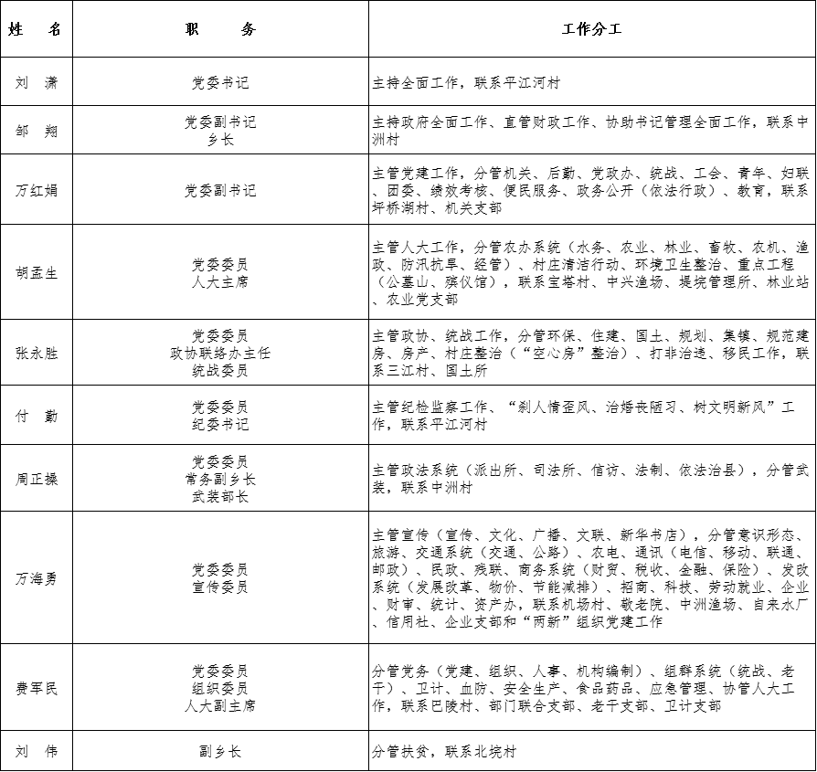 2019年中洲鄉(xiāng)黨政領導工作分工安排表