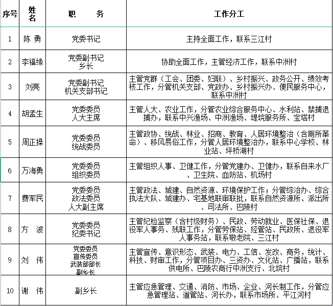 2023年中洲鄉(xiāng)黨政領(lǐng)導(dǎo)工作分工安排表